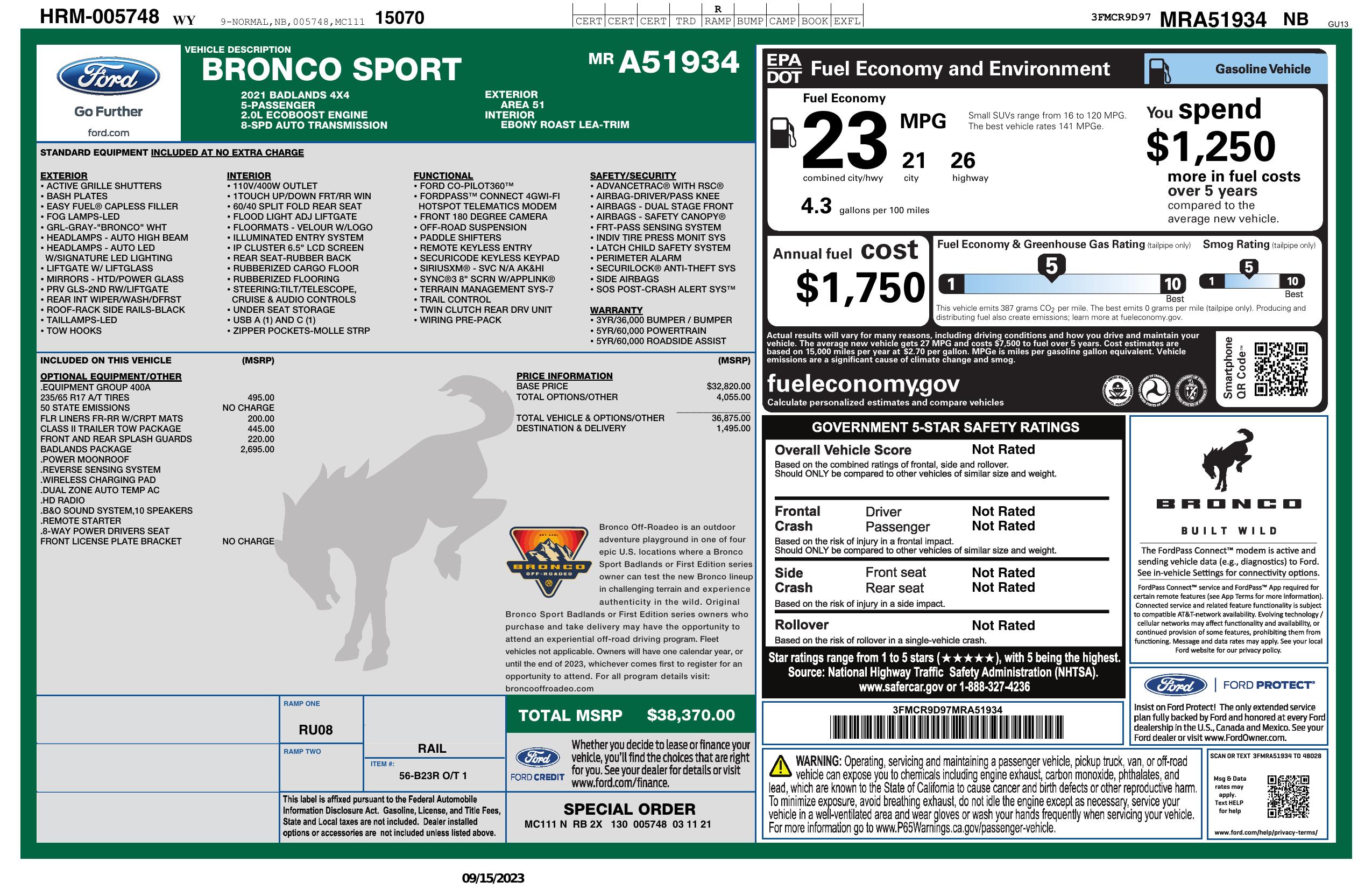 2021 Ford Bronco Sport Badlands 4x4 *Ltd Avail*