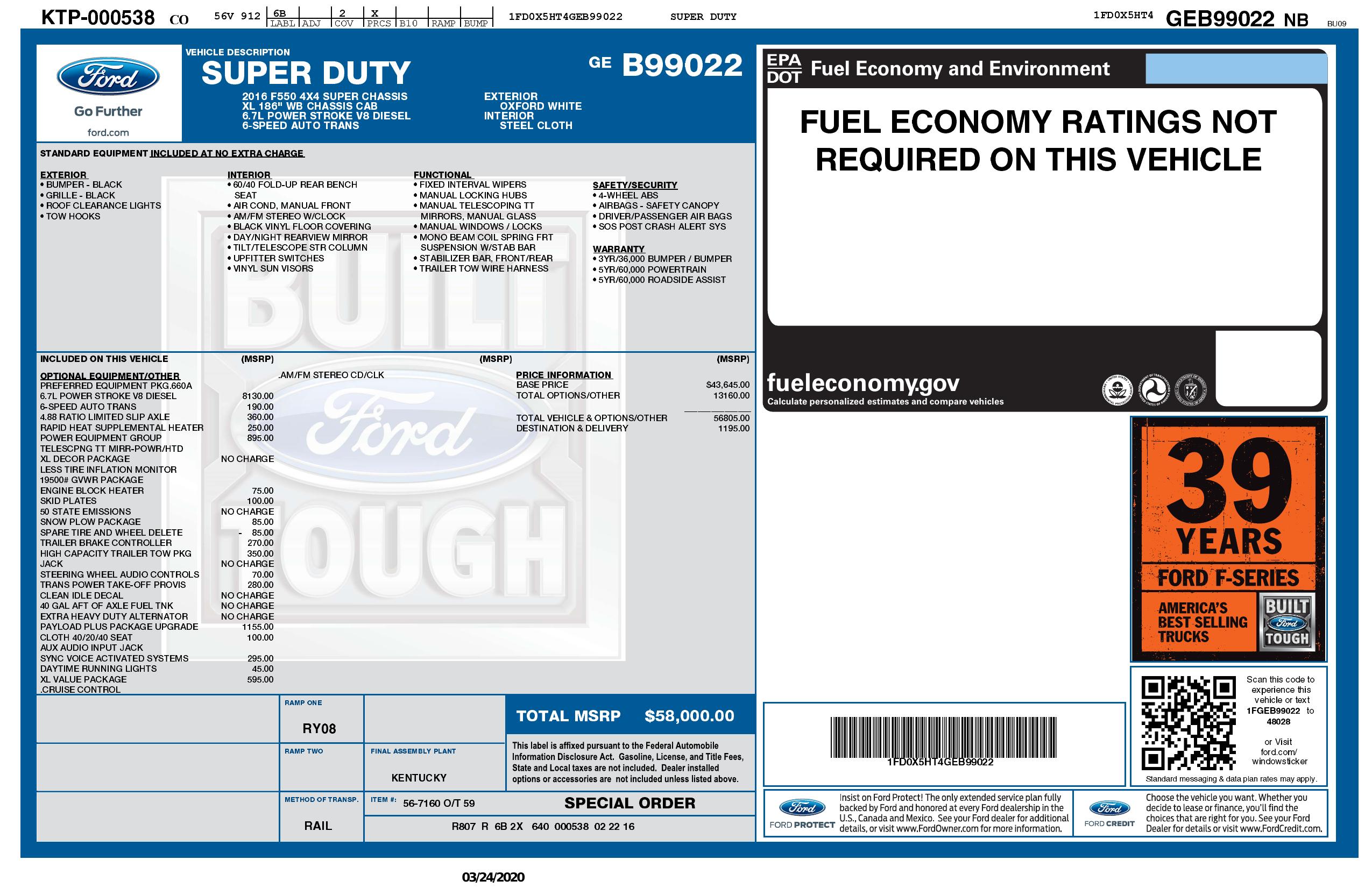 2016 Ford Super Duty F 550 Drw 4 Wd Super Cab Wb Ca