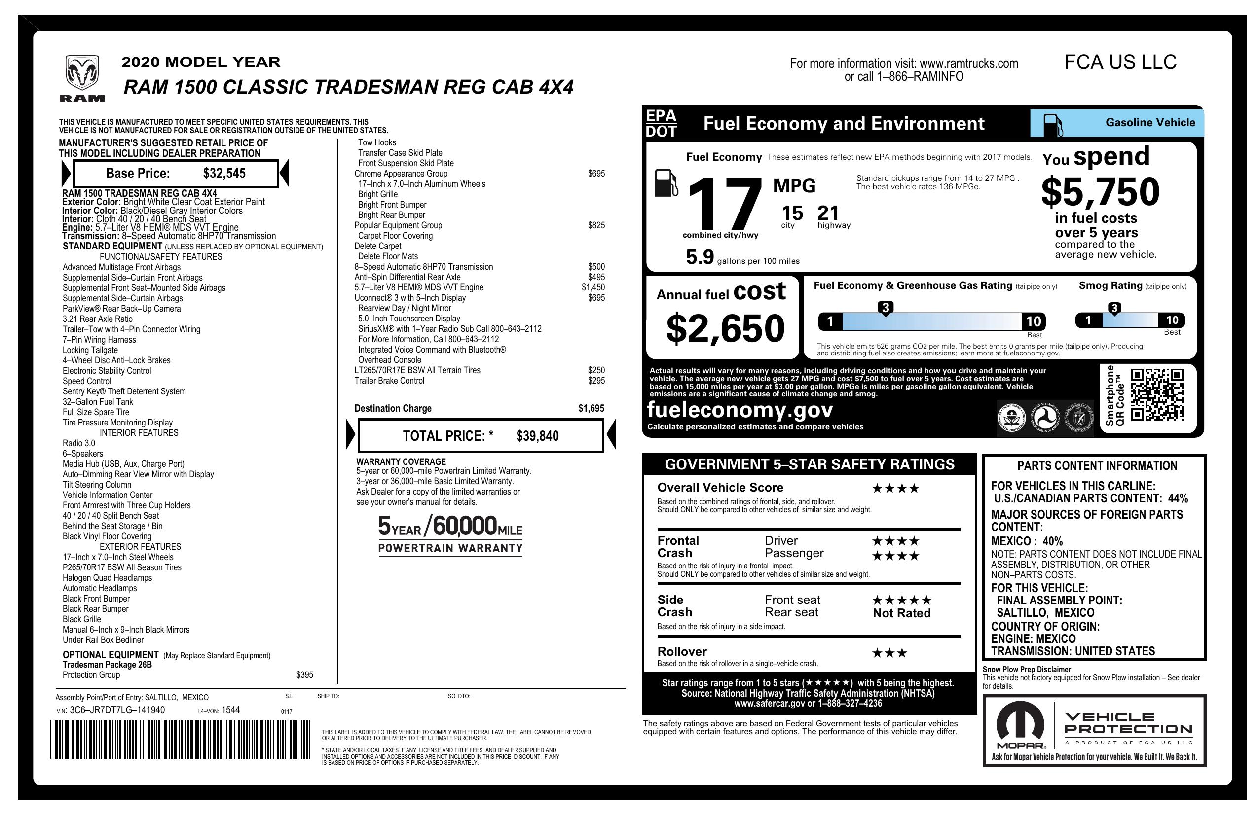 2020 Ram 1500 Classic Tradesman 4x4 Reg Cab 8' Box