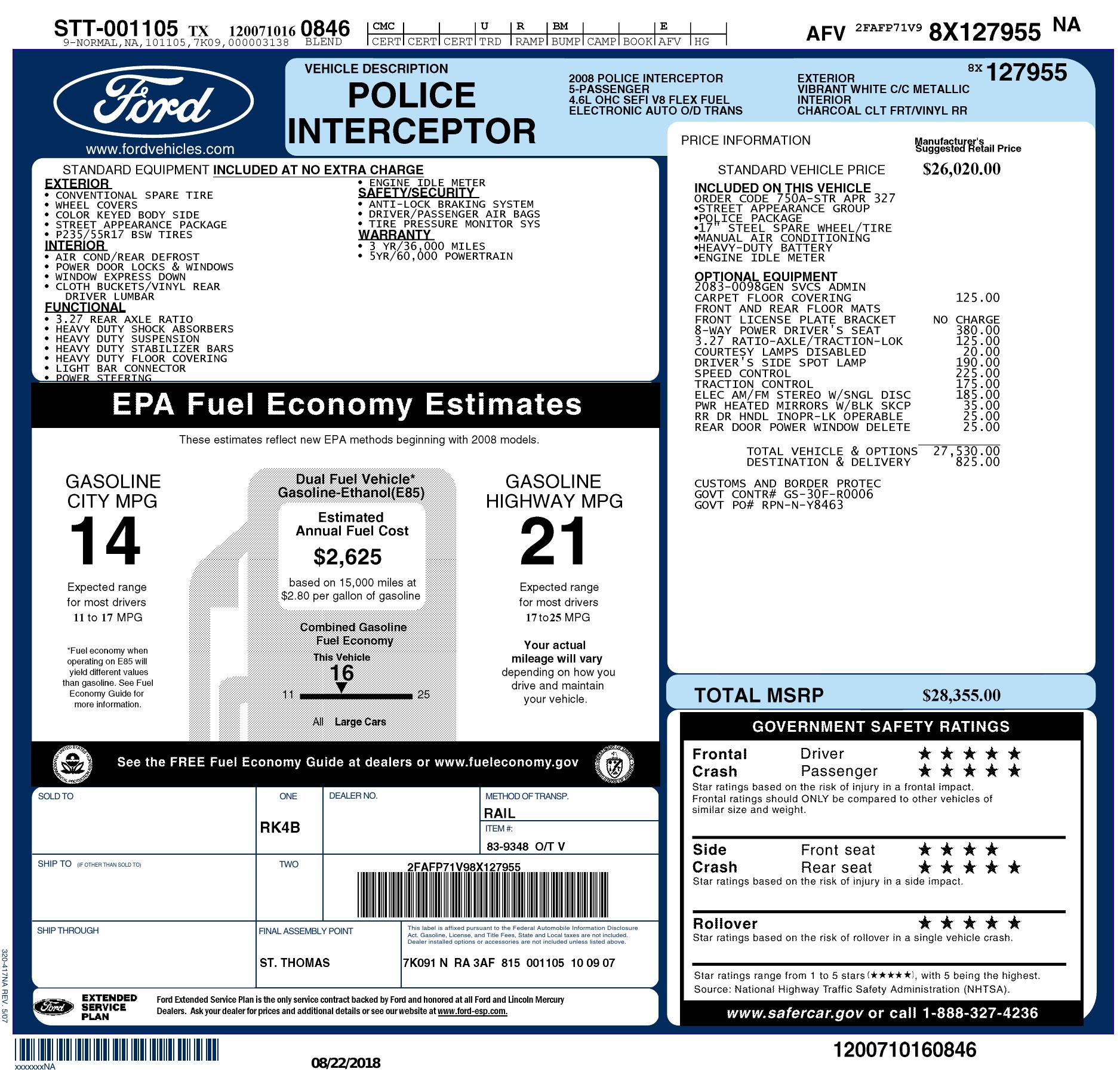 2008 Ford Crown Victoria Police Interceptor 4.6 L V8
