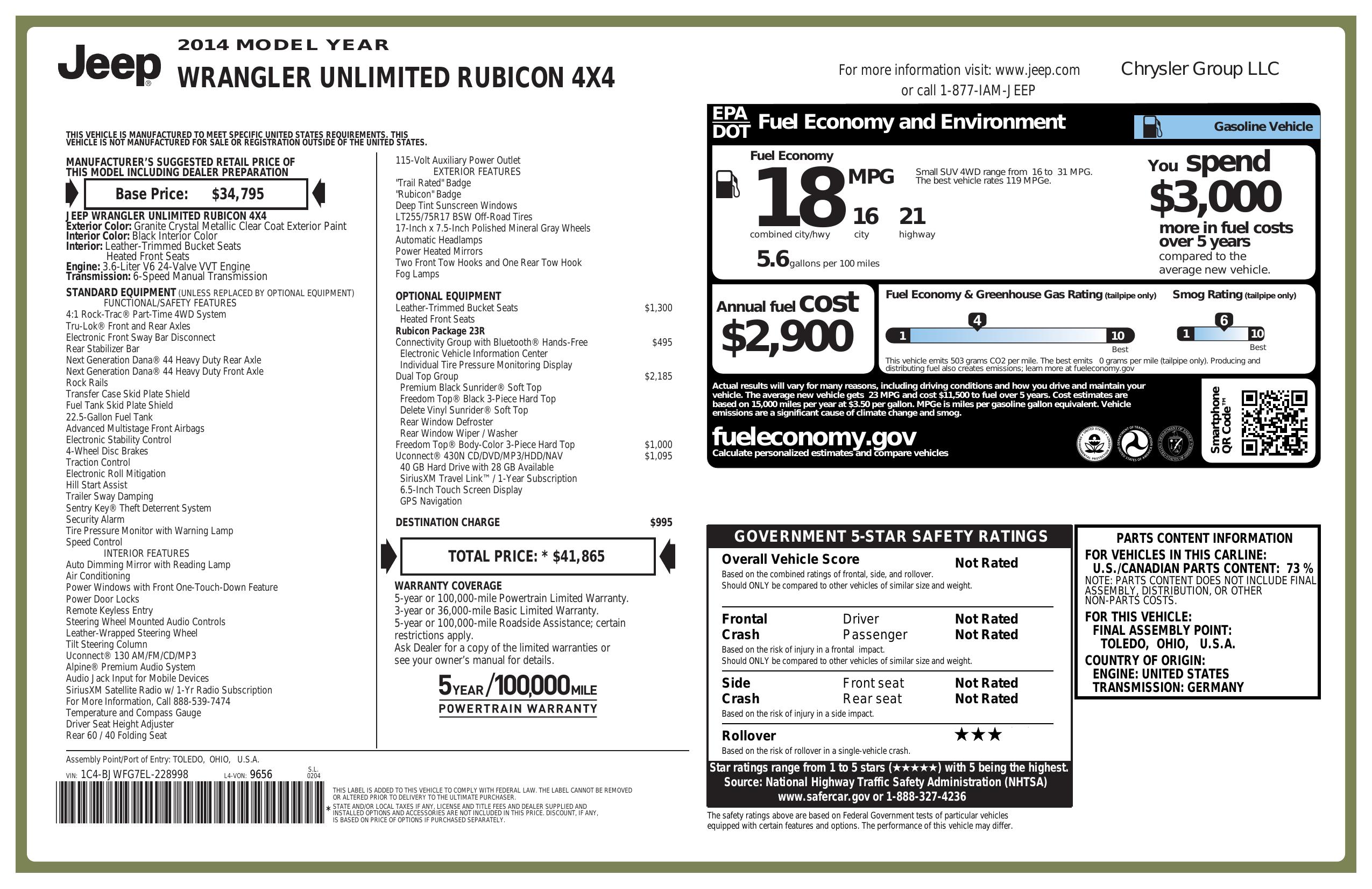 2014 Jeep Wrangler Unlimited 4 Wd 4dr Rubicon