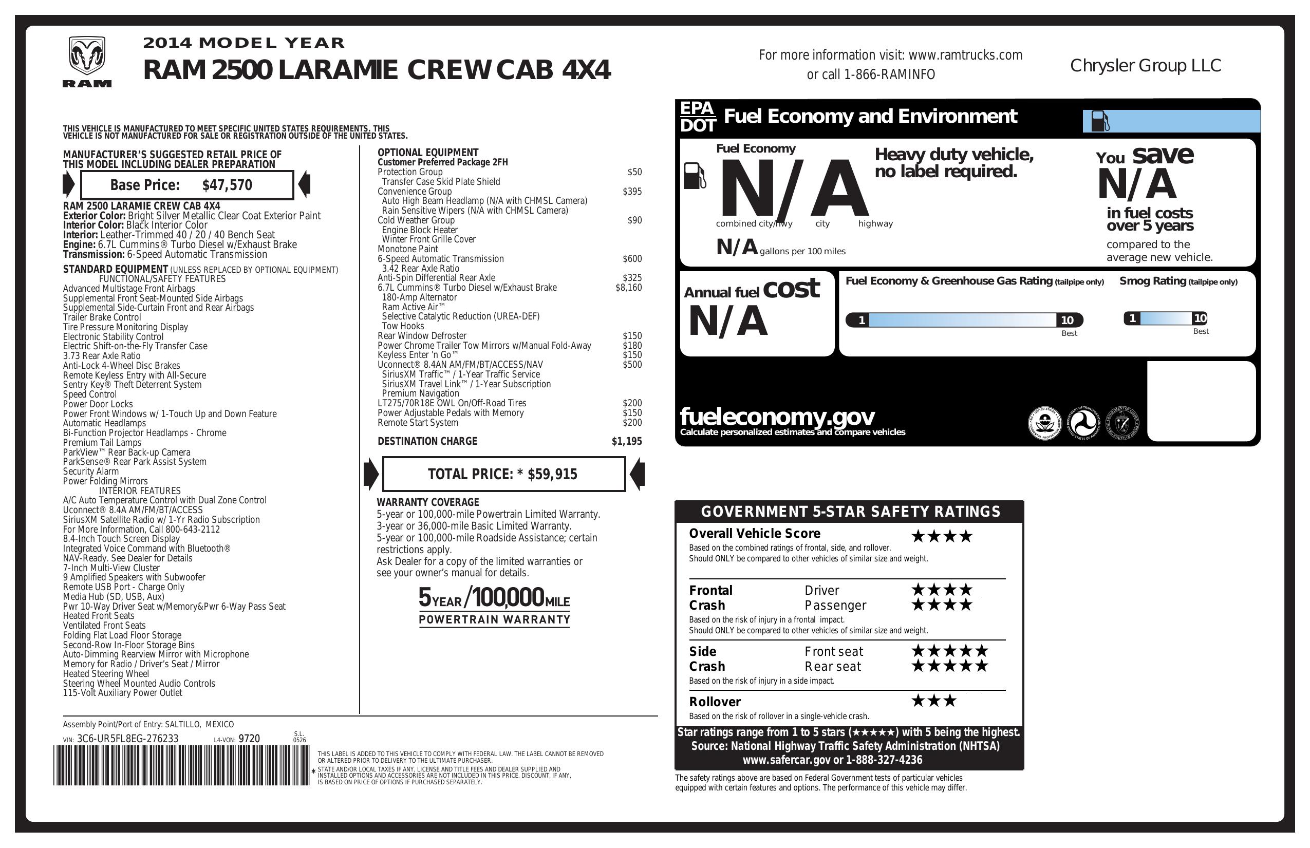 2014 Ram 2500 4 Wd Crew Cab 149" Laramie
