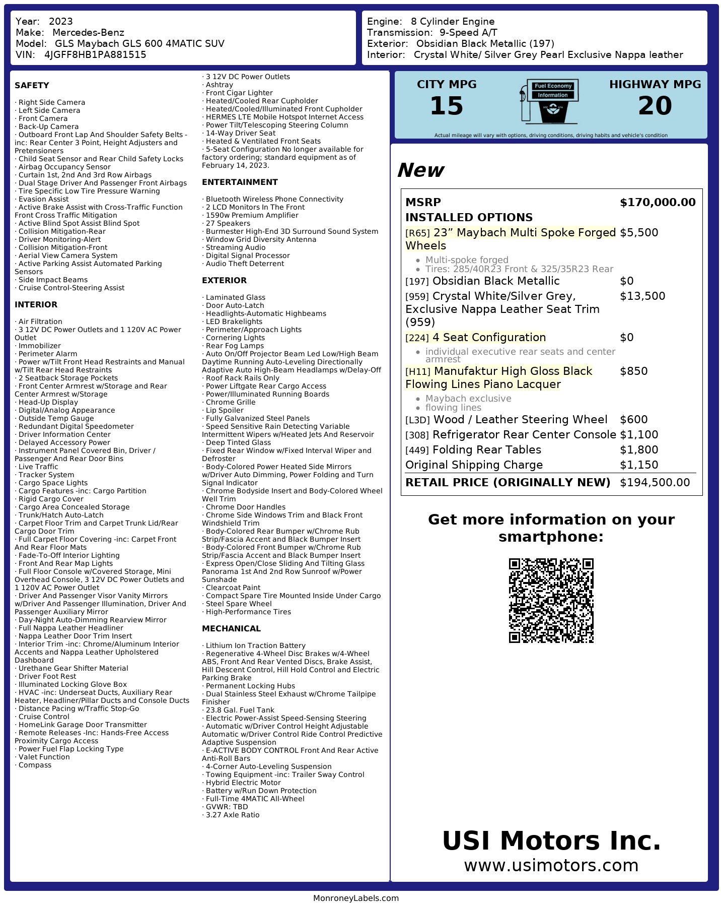 2023 Mercedes Benz Gls Maybach Gls 600 4 Matic Suv