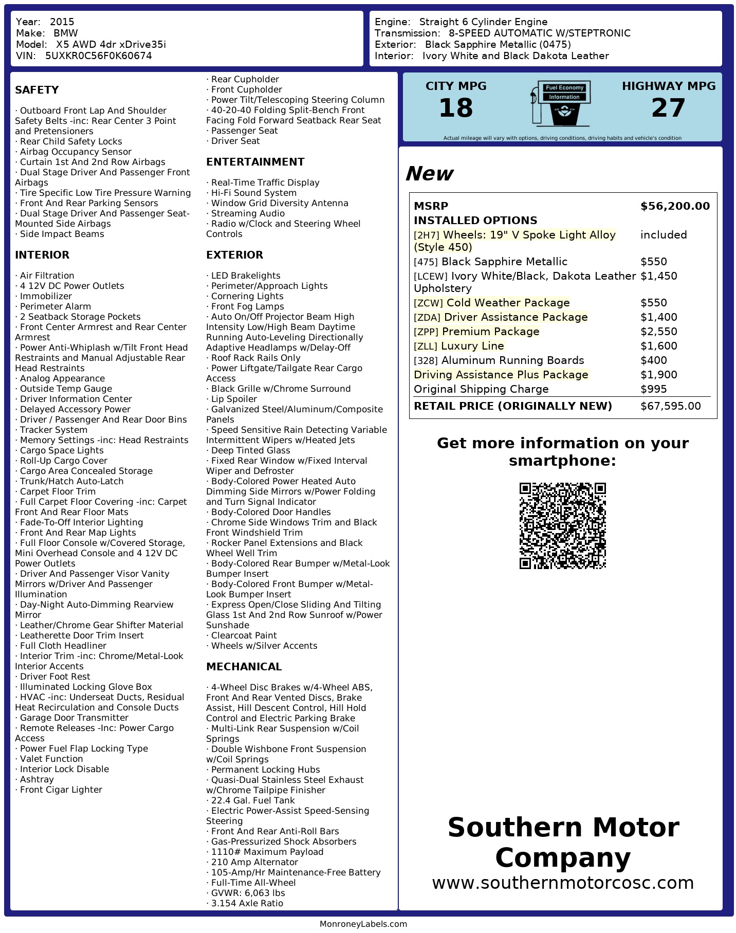 2015 BMW X5 Awd 4dr X Drive35i