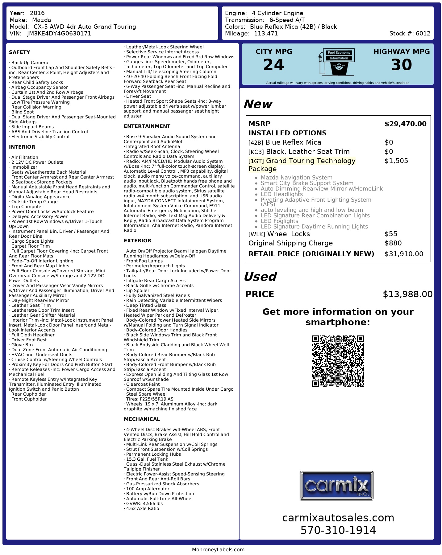 2016 Mazda Cx 5 Awd 4dr Auto Grand Touring