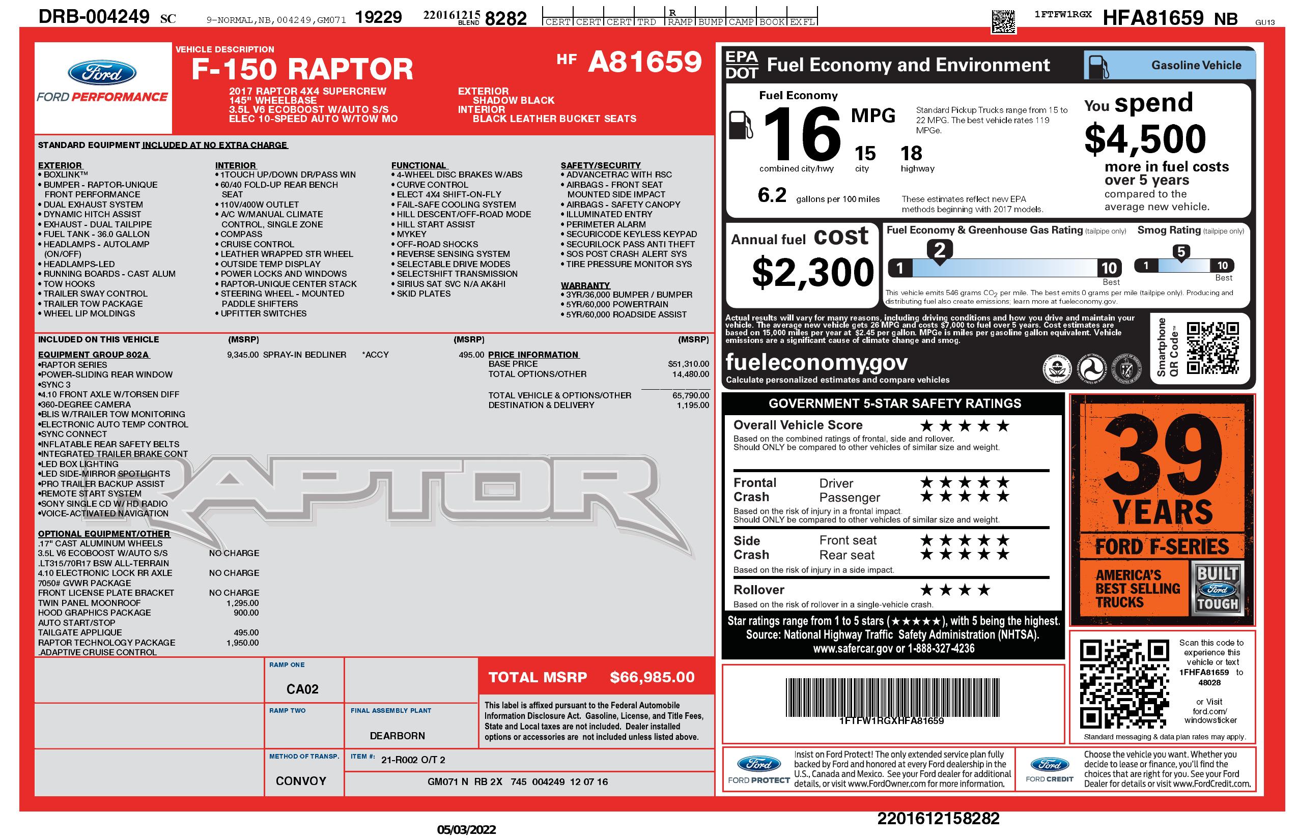 2017 Ford F 150 Raptor 4 Wd Super Crew 5.5' Box