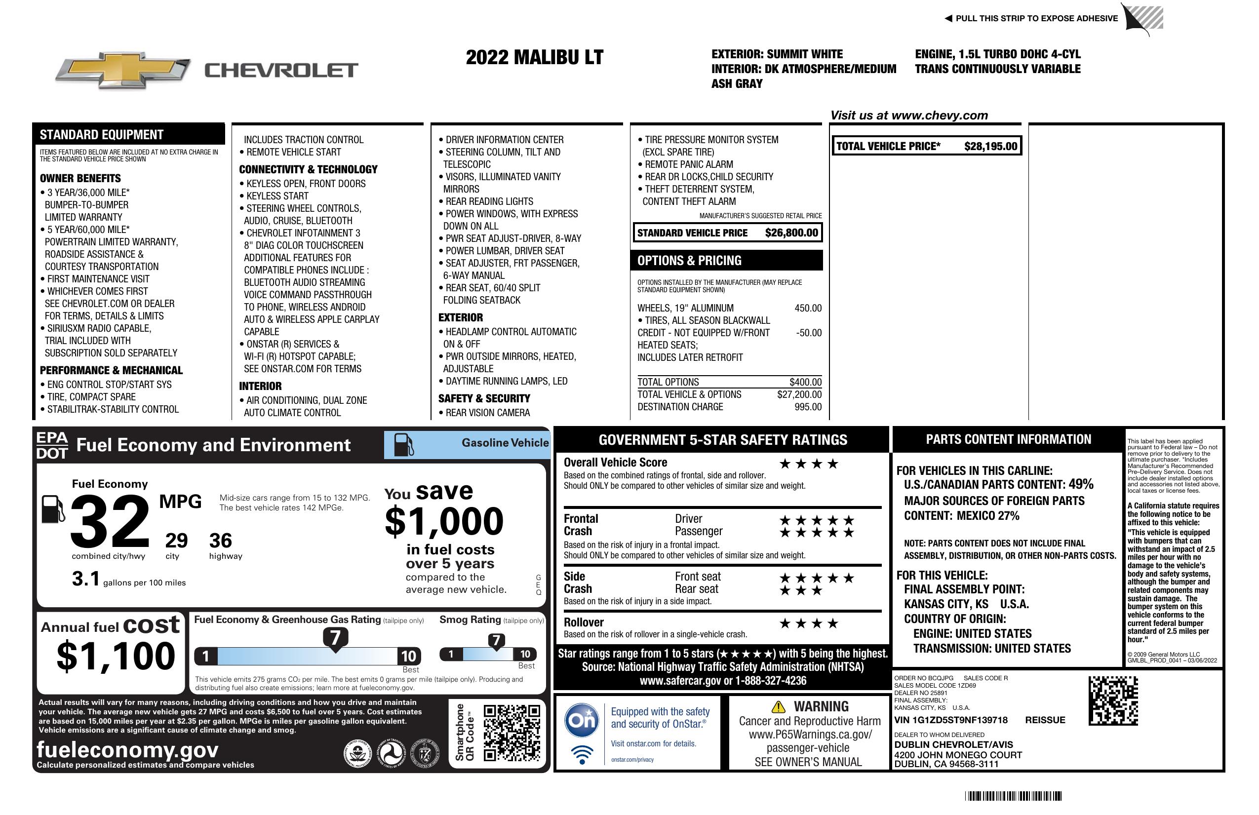 2022 Chevrolet Malibu 4dr Sdn Lt