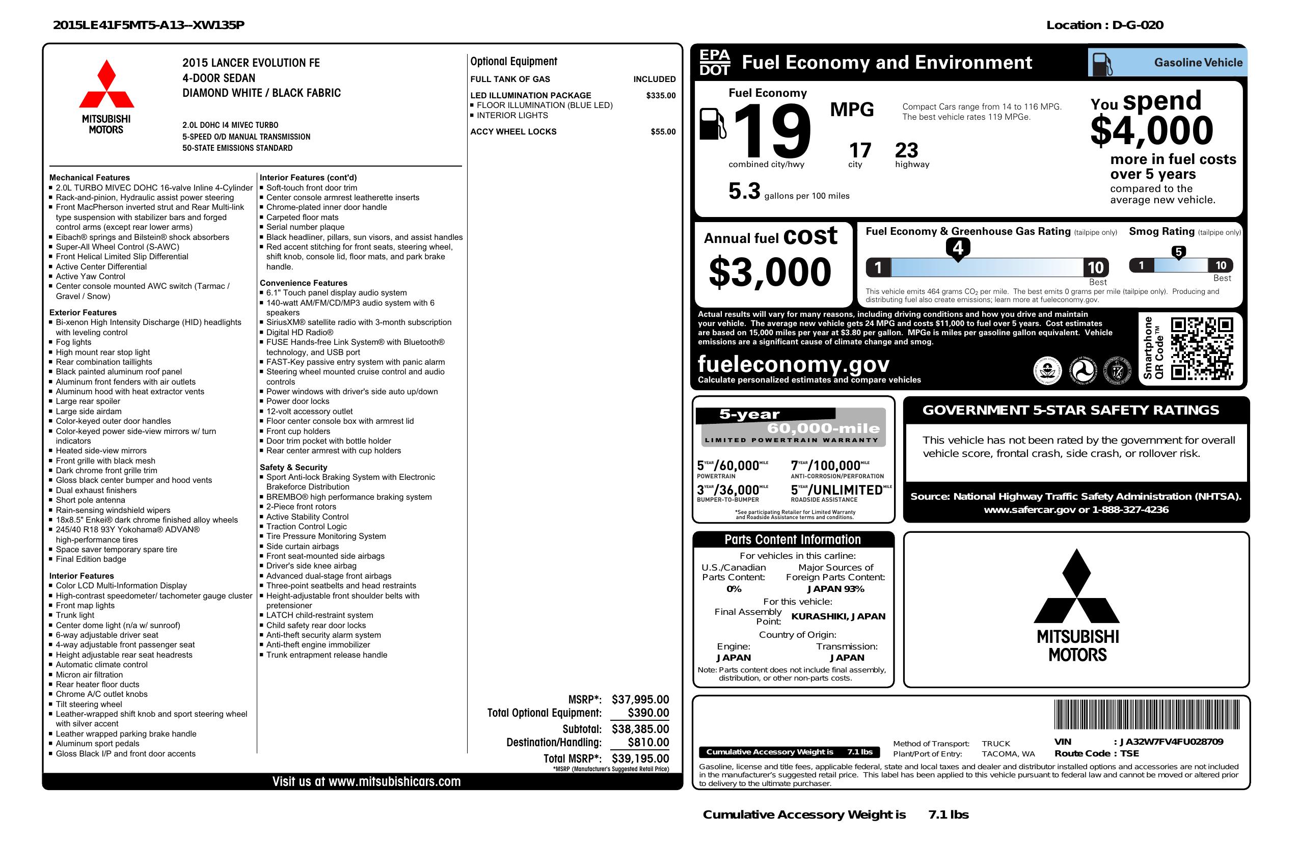 2015 Mitsubishi Lancer Evolution 4dr Sdn Man Final Edition