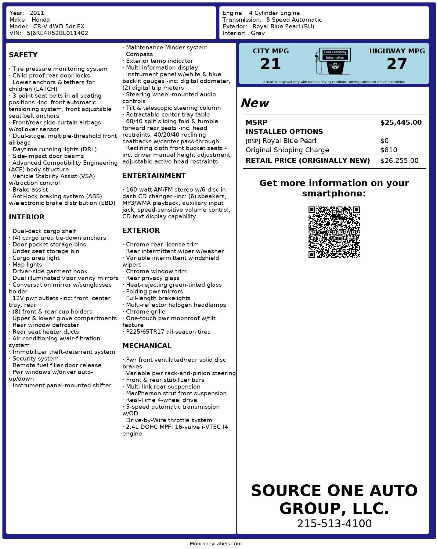 2011 Honda Cr V 4 Wd 5dr Ex