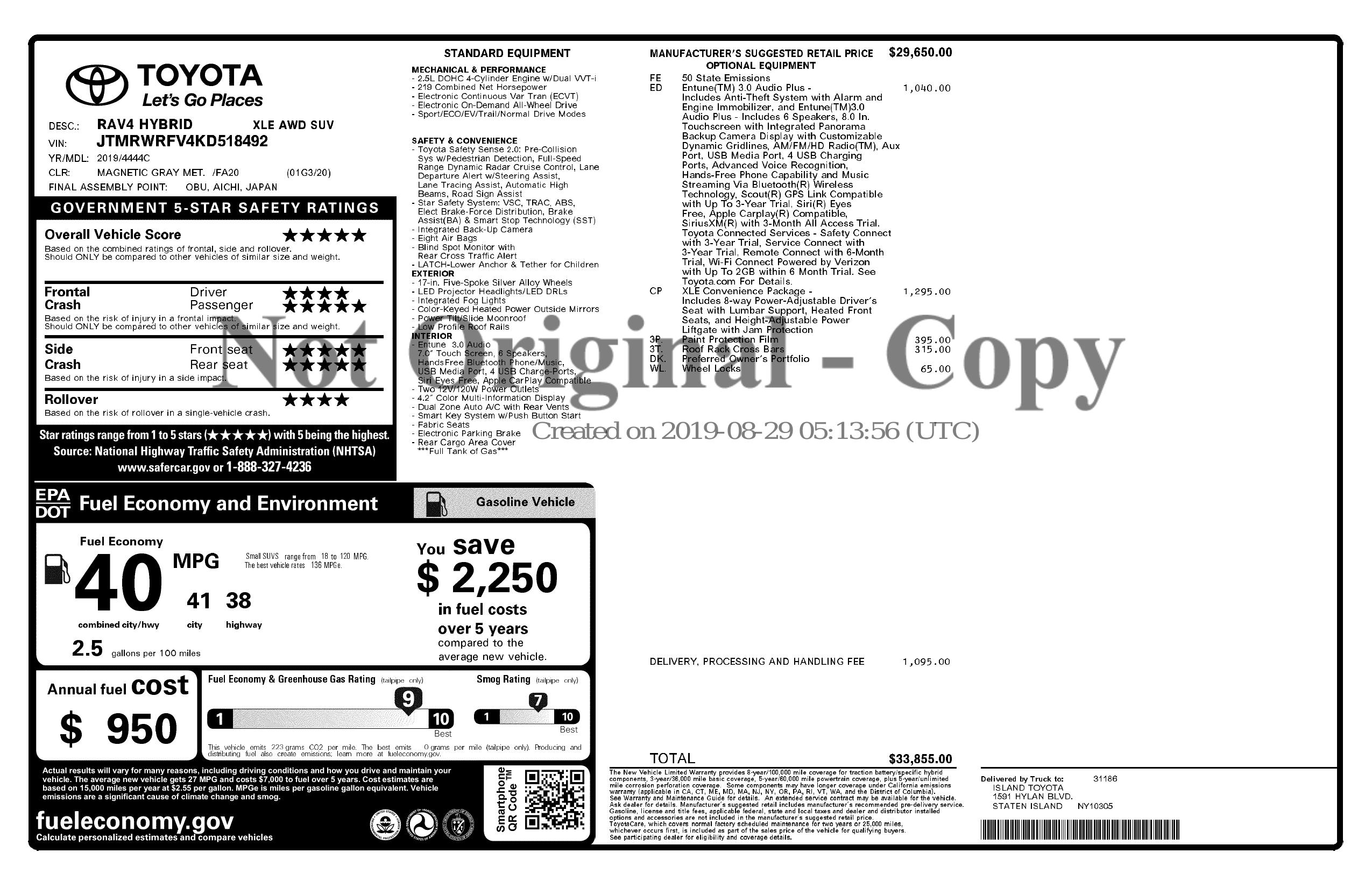 2019 Toyota Rav4 Hybrid Xle Awd (Natl)