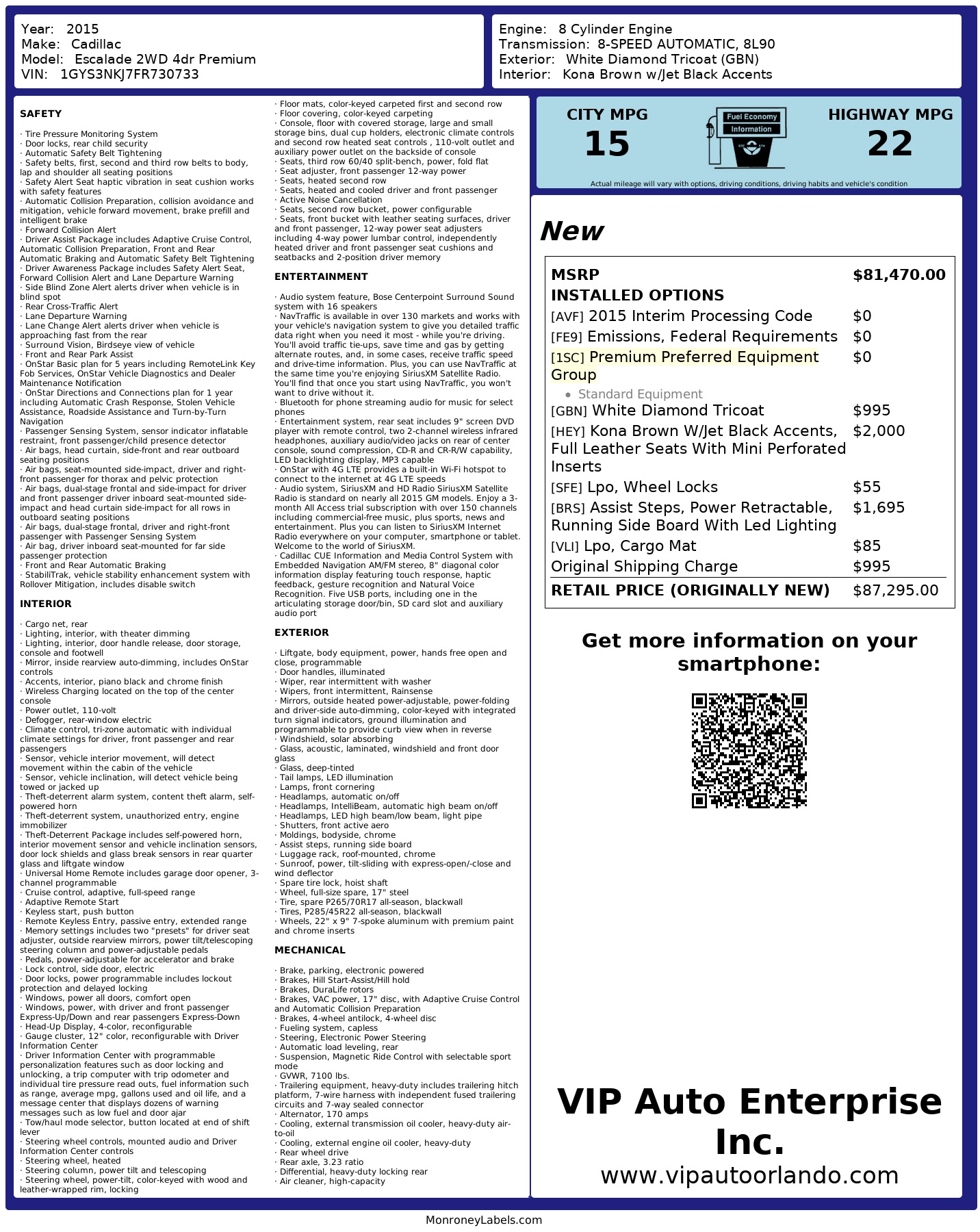 2015 Cadillac Escalade 2 Wd 4dr Premium