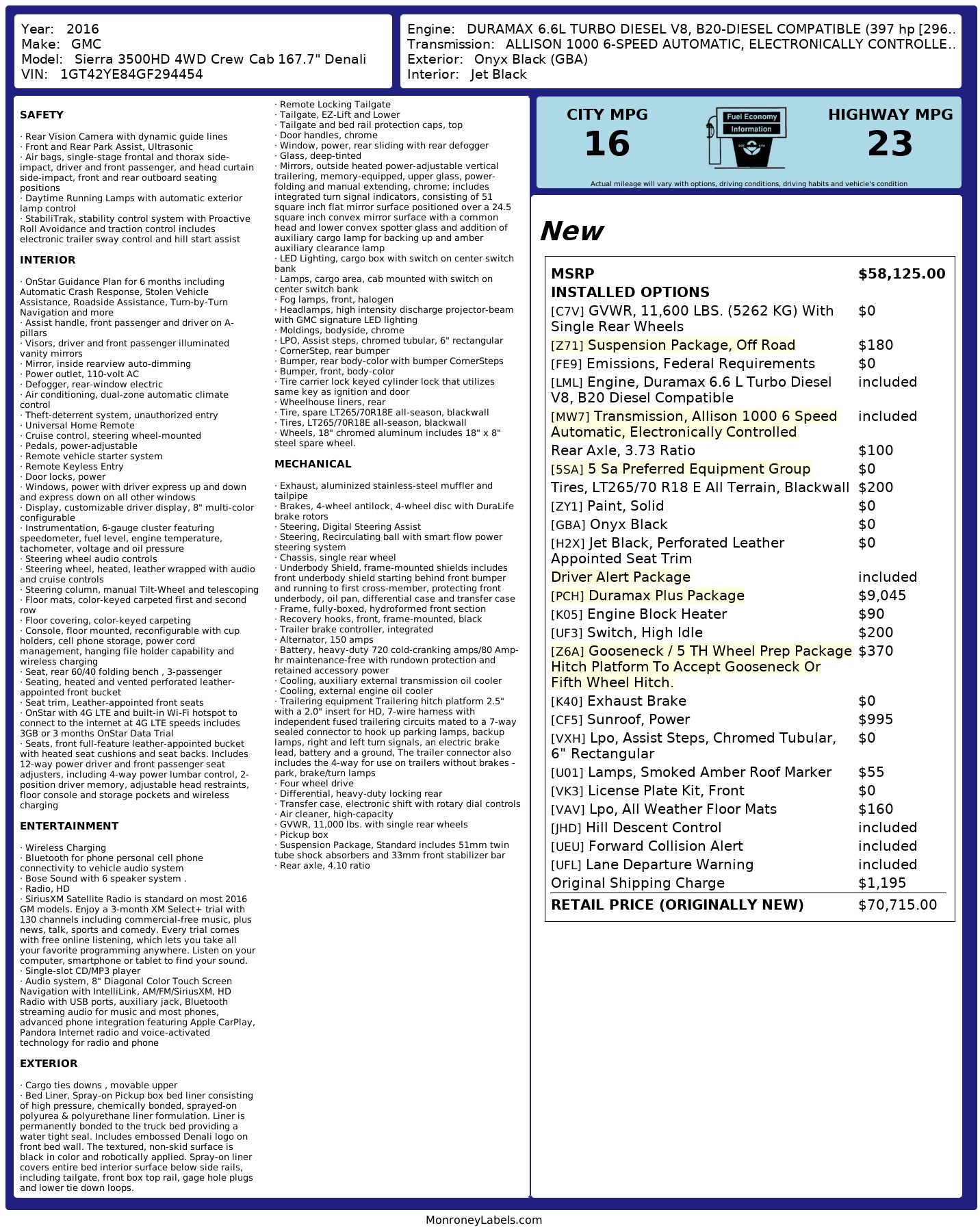 2016 GMC Sierra 3500 Hd 4 Wd Crew Cab 167.7" Denali