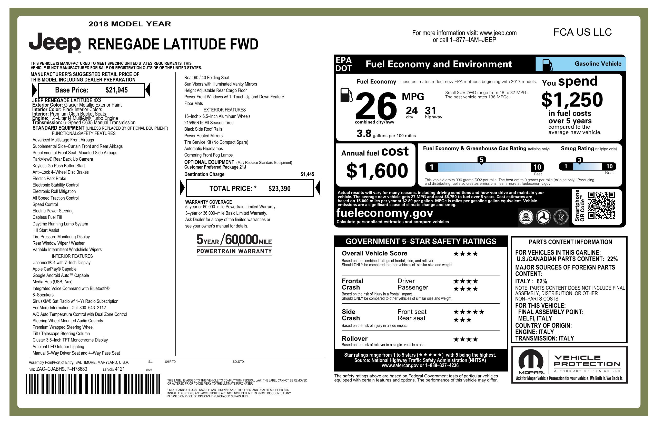 2018 Jeep Renegade Latitude Fwd