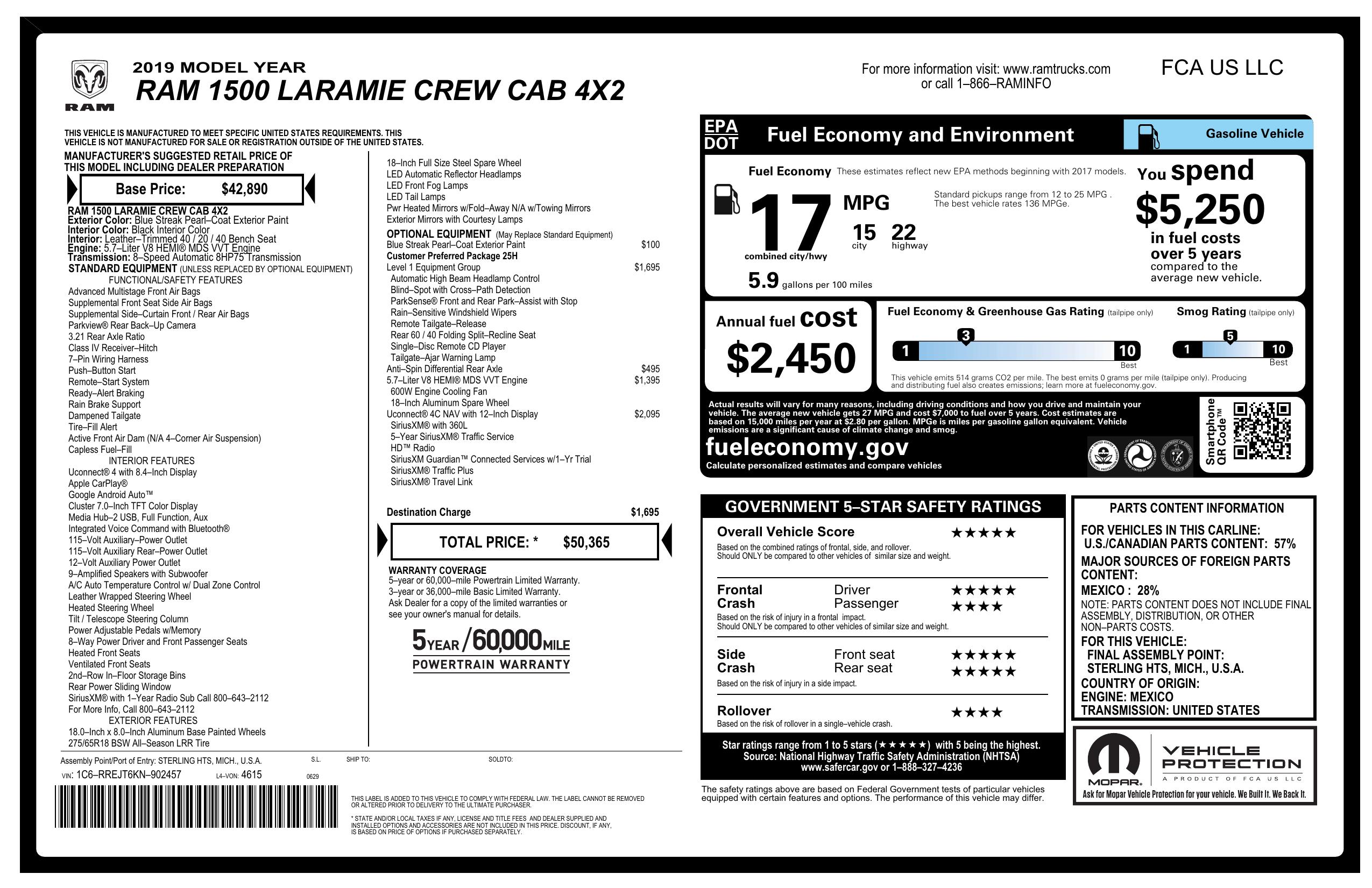 2019 Ram 1500 Laramie 4x2 Crew Cab 5'7" Box