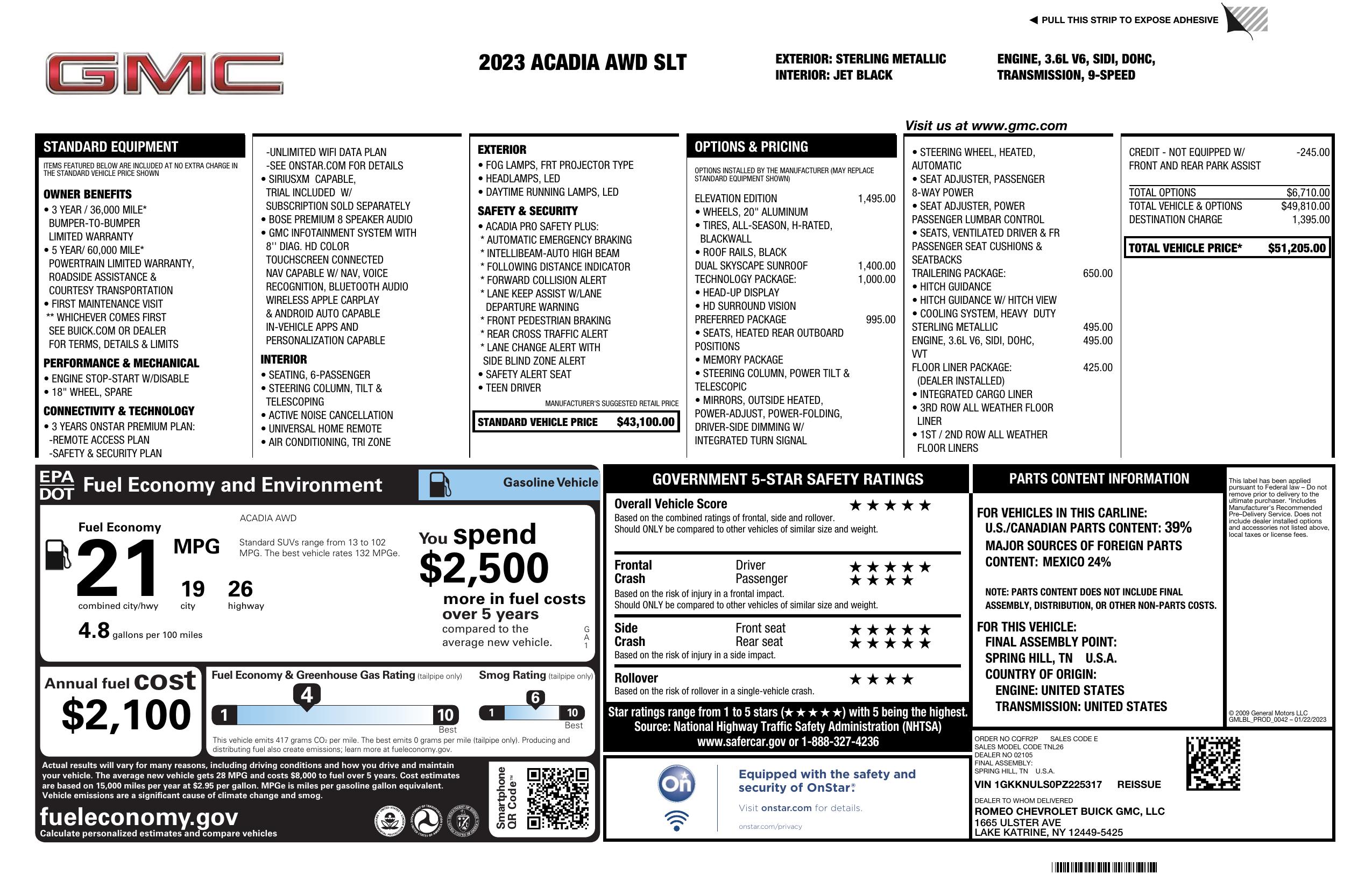 2023 GMC Acadia Awd 4dr Slt