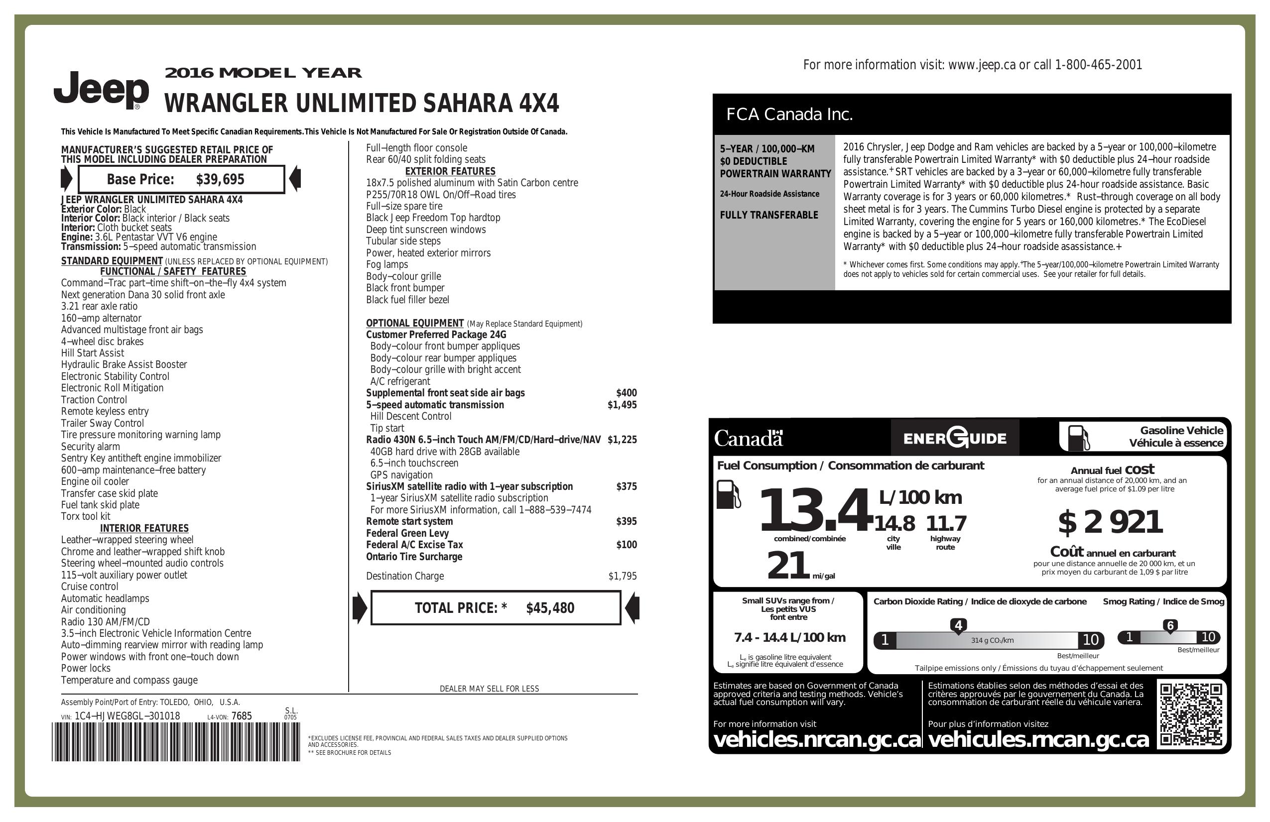 2016 Jeep Wrangler Unlimited 4 Wd 4dr