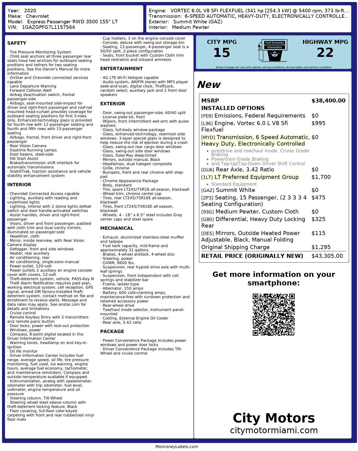 2020 Chevrolet Express Passenger Rwd 3500 155" Lt