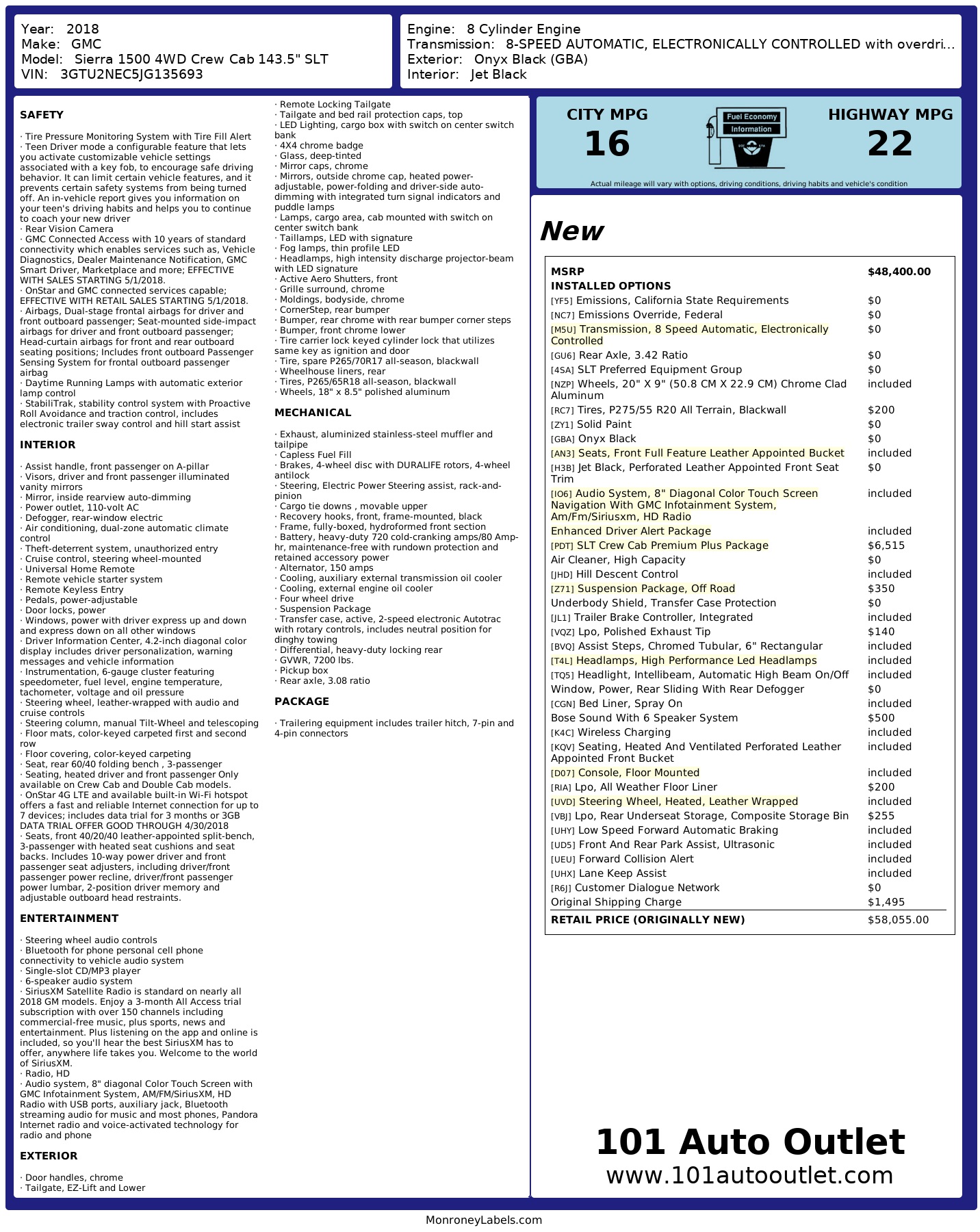 2018 GMC Sierra 1500 4 Wd Crew Cab 143.5" Slt