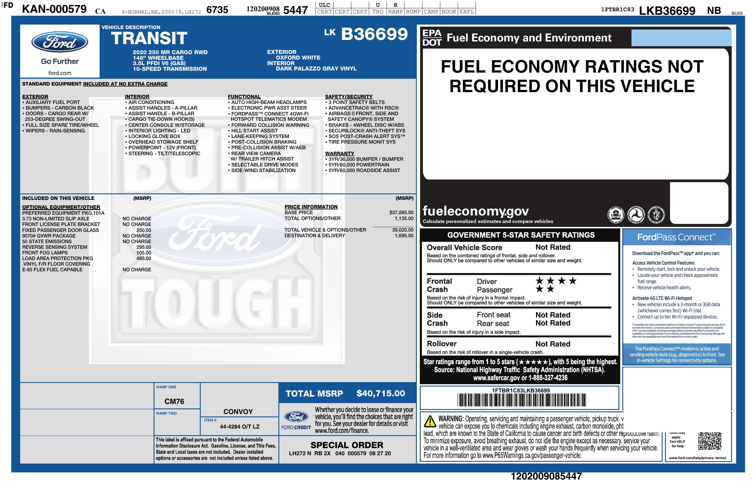 2020 Ford Transit Cargo Van T 250 Med Rf 9070 Gvwr Rwd