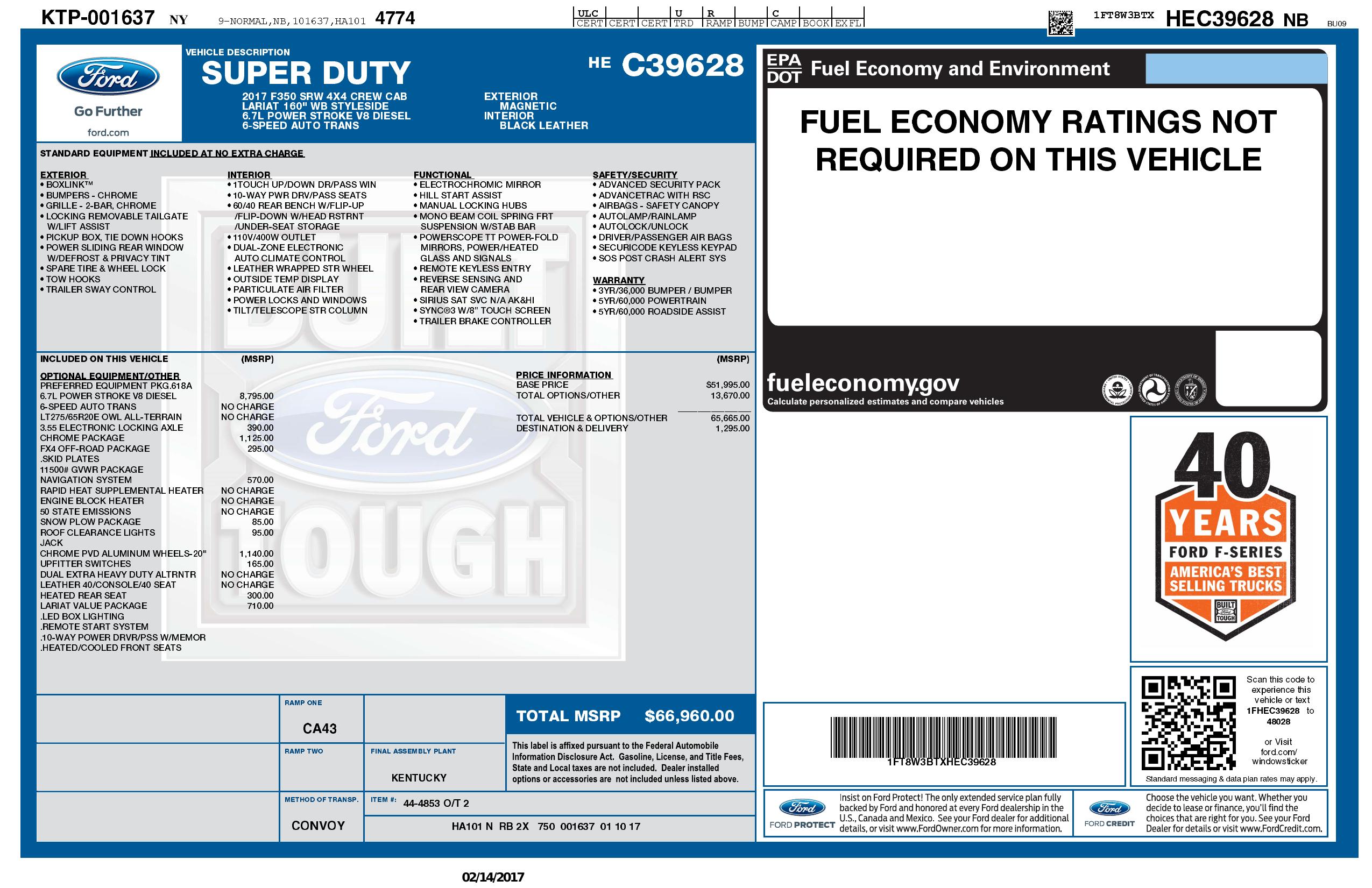 2017 Ford Super Duty F 350 Srw 4 Wd Crew Cab Box
