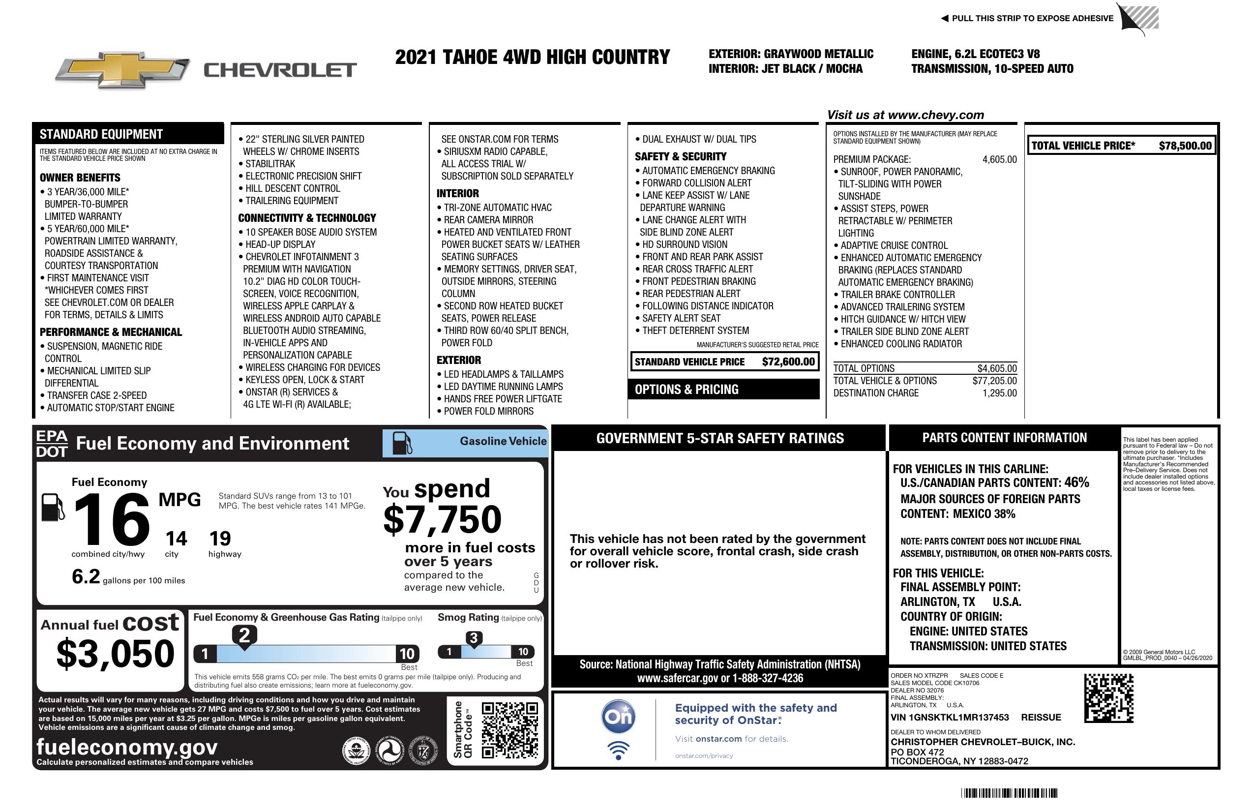 2021 Chevrolet Tahoe 4 Wd 4dr High Country