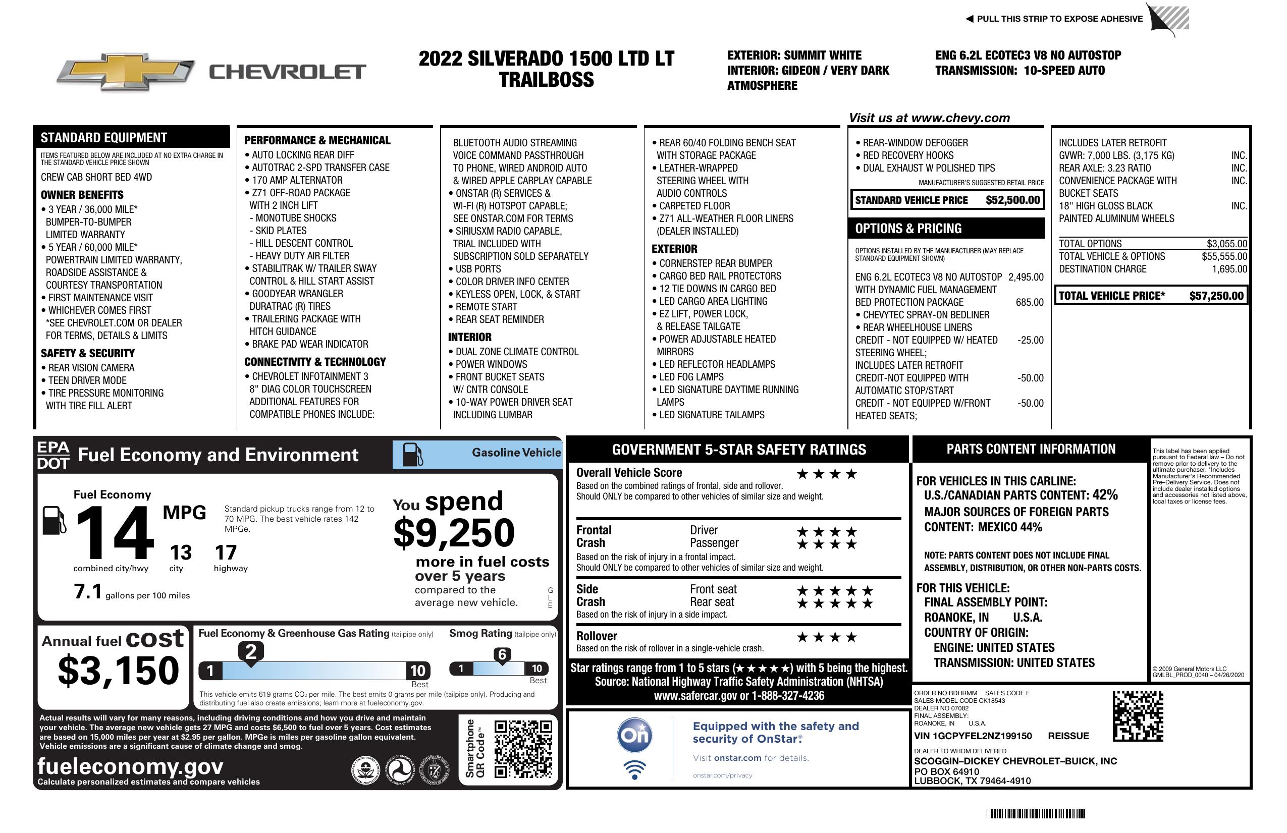 2022 Chevrolet Silverado 1500 Ltd 4 Wd Crew Cab 147" Lt Trail Boss
