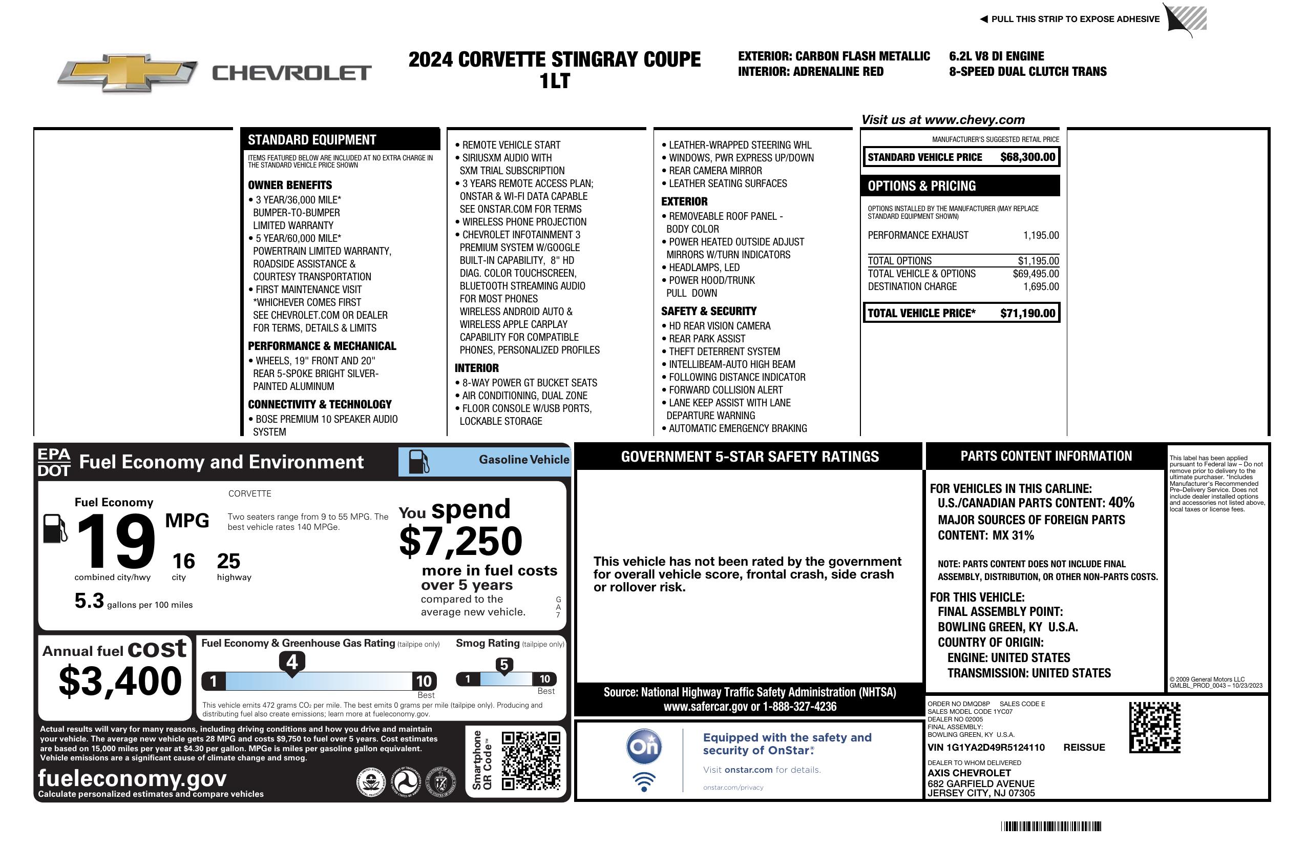 2024 Chevrolet Corvette 2dr Stingray Cpe W/1 Lt
