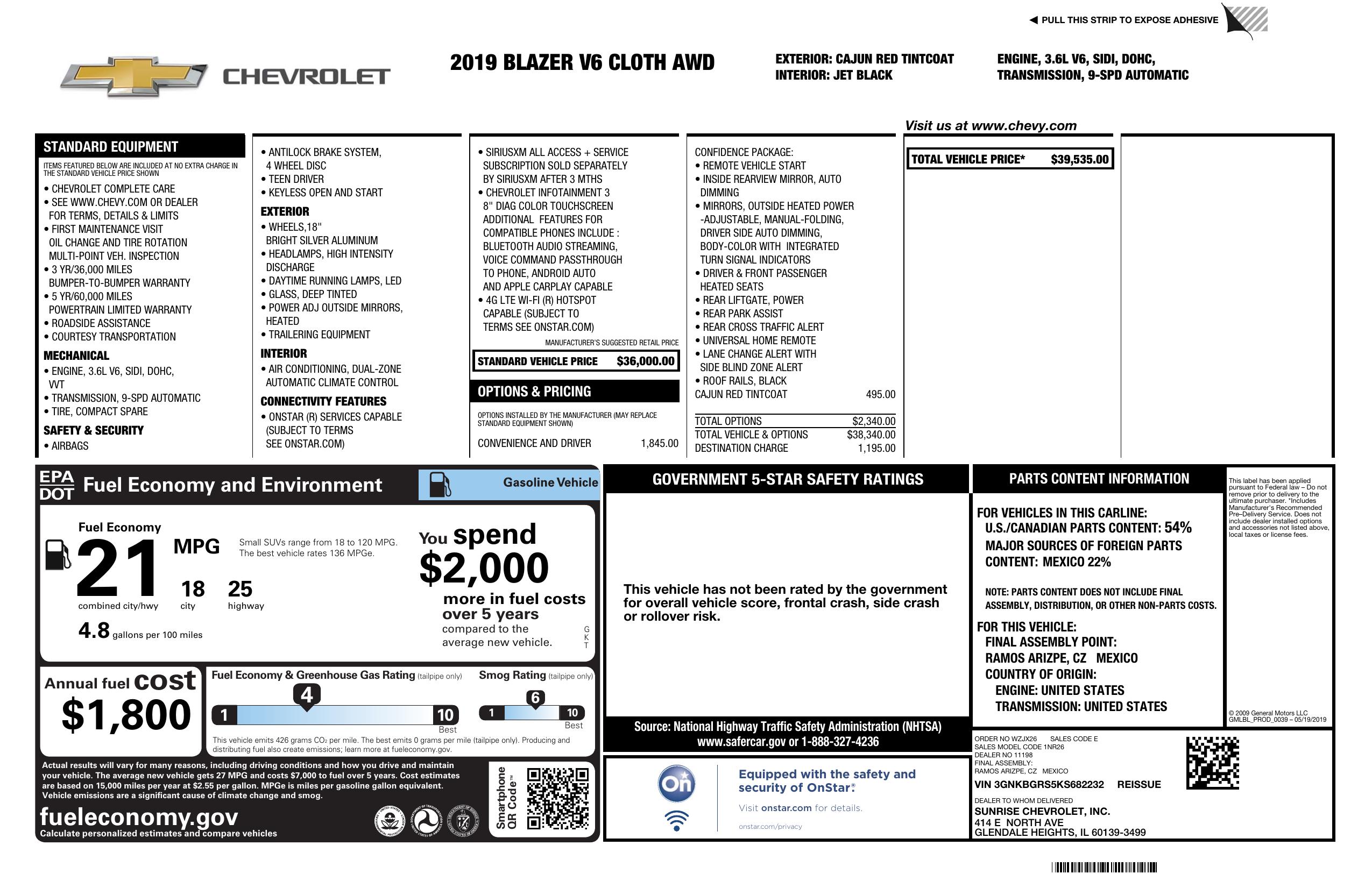 2019 Chevrolet Blazer Awd 4dr W/2 Lt