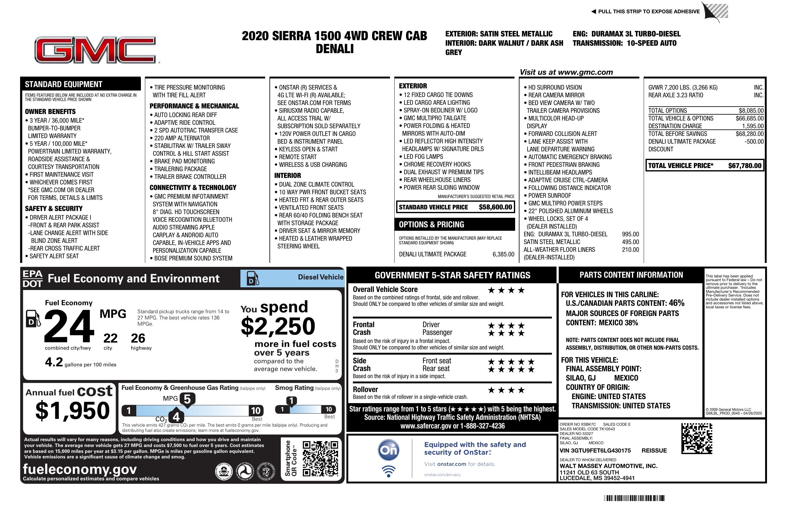 2020 GMC Sierra 1500 4 Wd Crew Cab 147" Denali