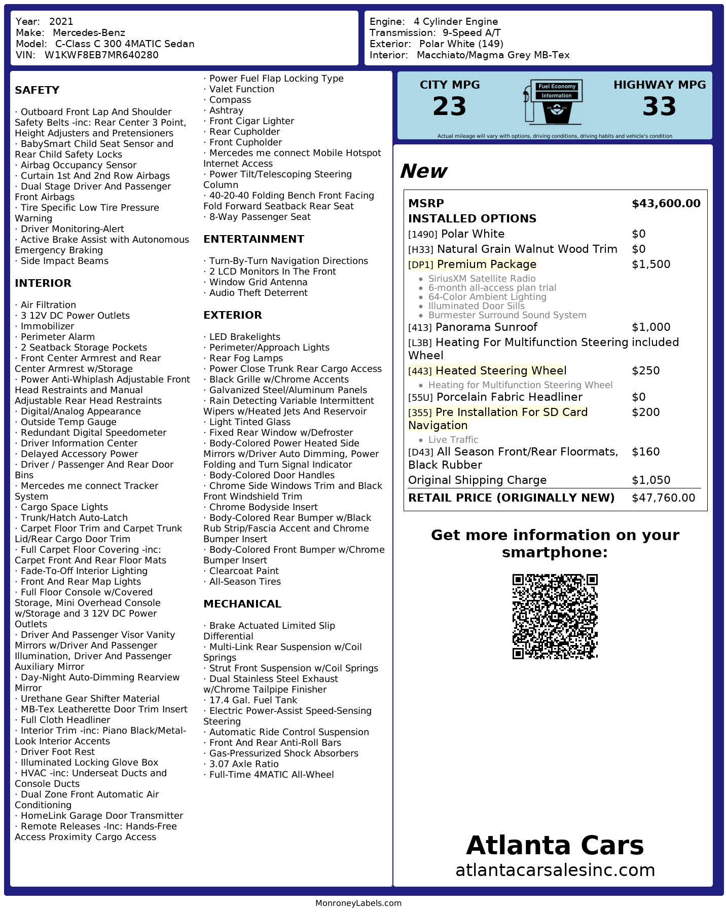 2021 Mercedes Benz C Class C 300 4 Matic Sedan