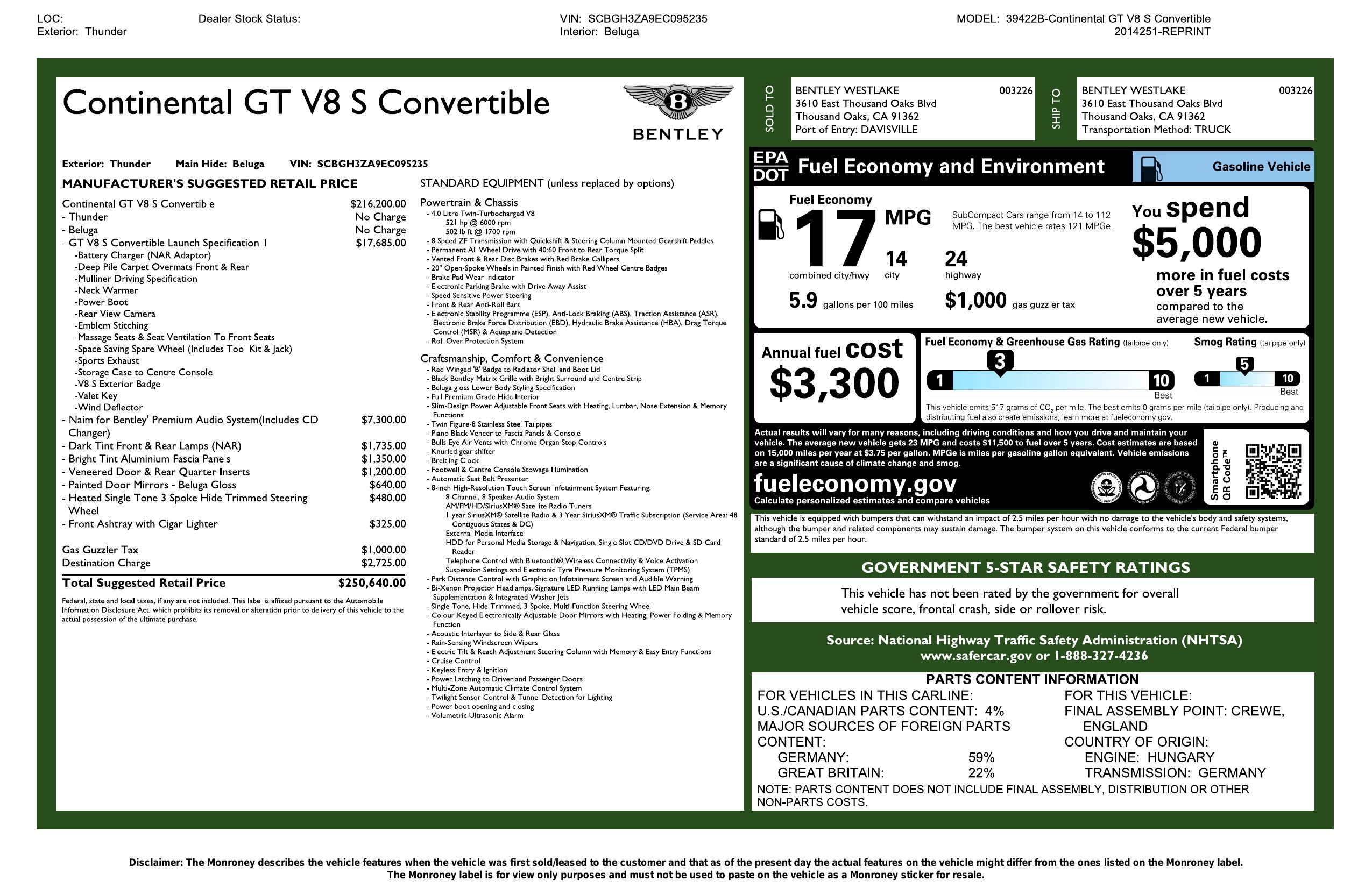 2014 Bentley Continental Gt V8 S 2dr Conv