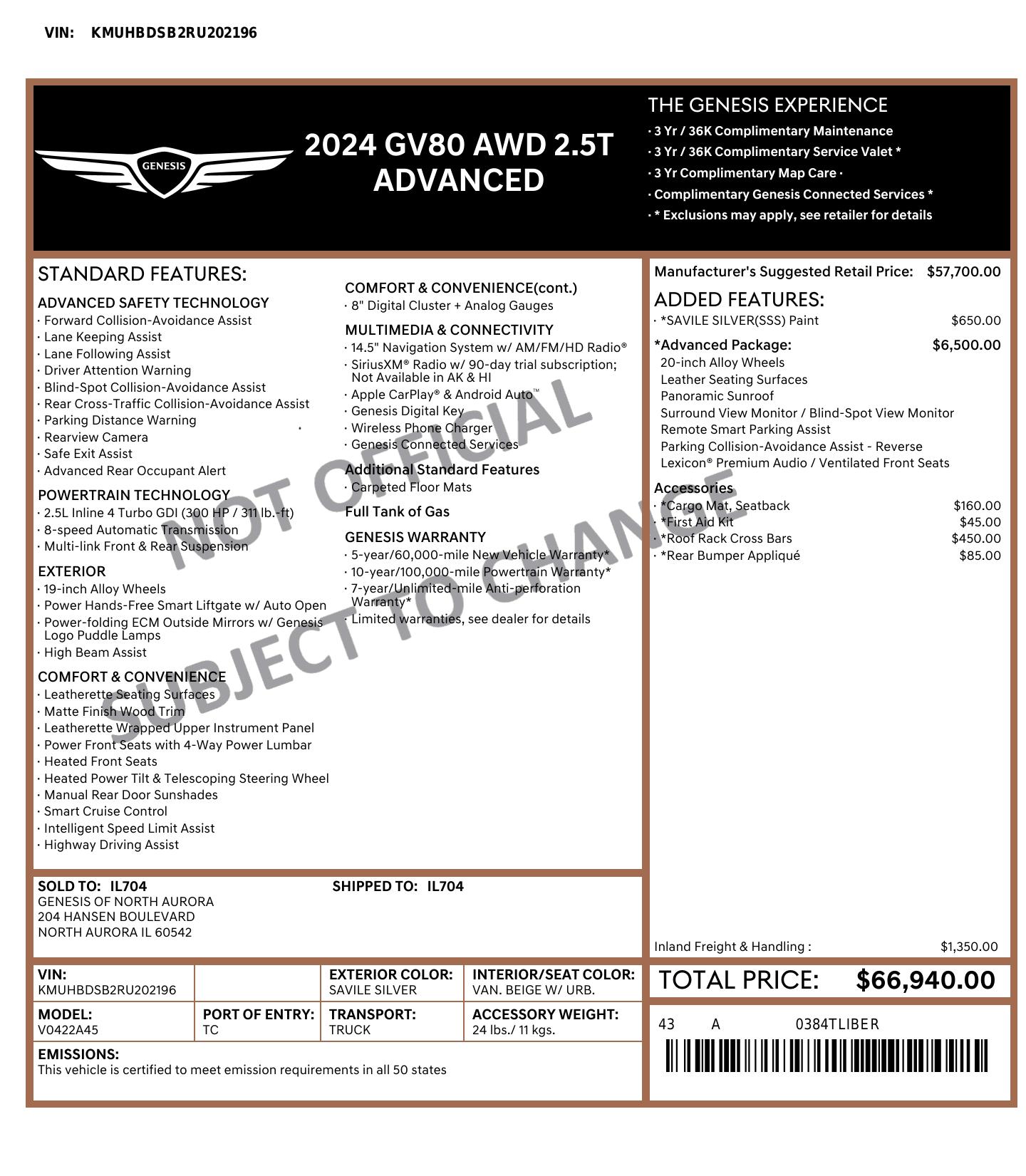 2024 Genesis Gv80 Awd 2.5 T 4dr Suv