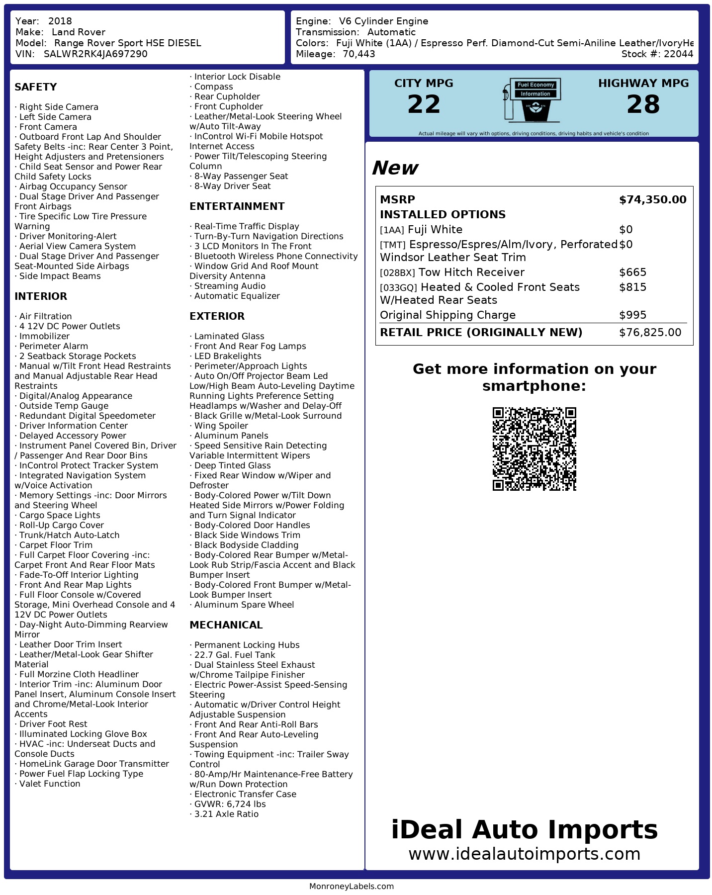 2018 Land Rover Range Rover Sport Hse Diesel