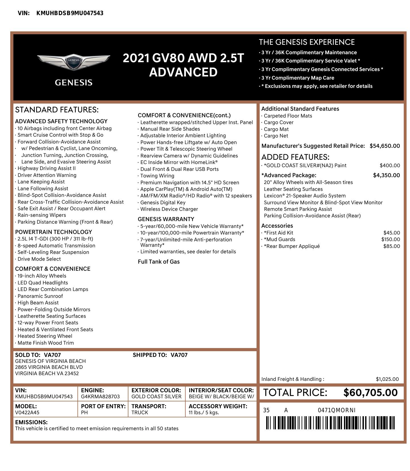 2021 Genesis Gv80 Awd 2.5 T 4dr Suv