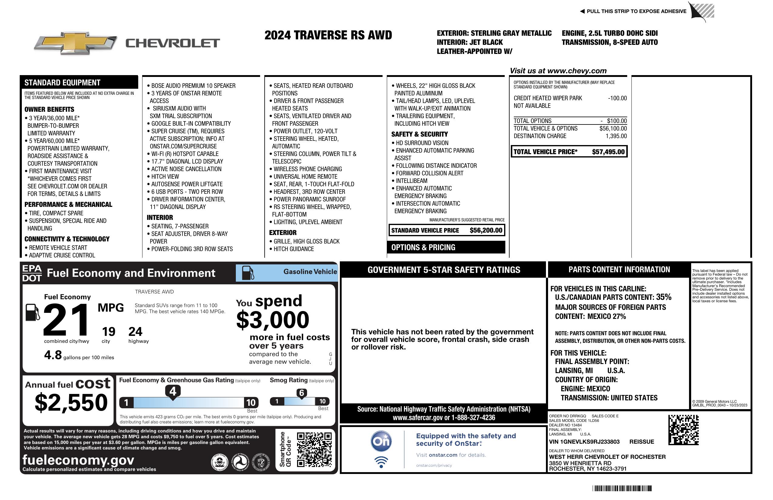 2024 Chevrolet Traverse 4dr Rs W/2 Rs