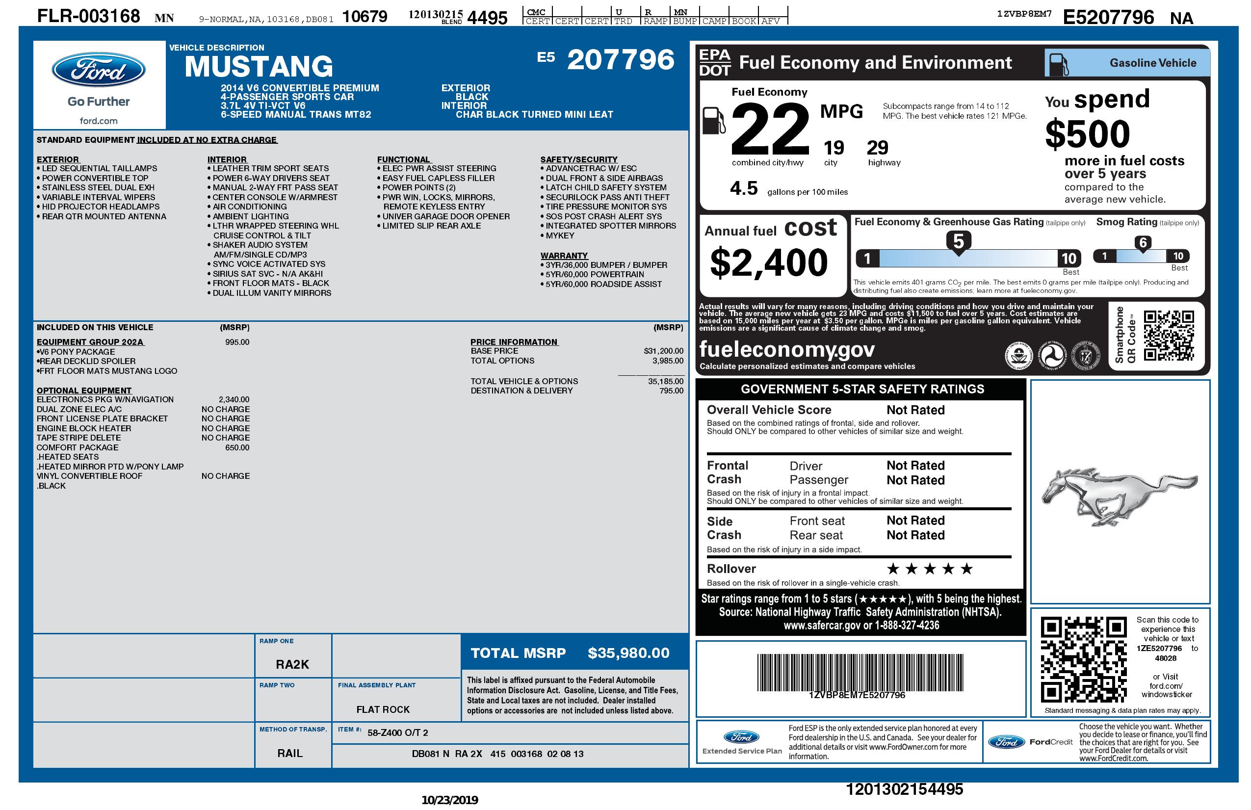 2014 Ford Mustang 2dr Conv V6