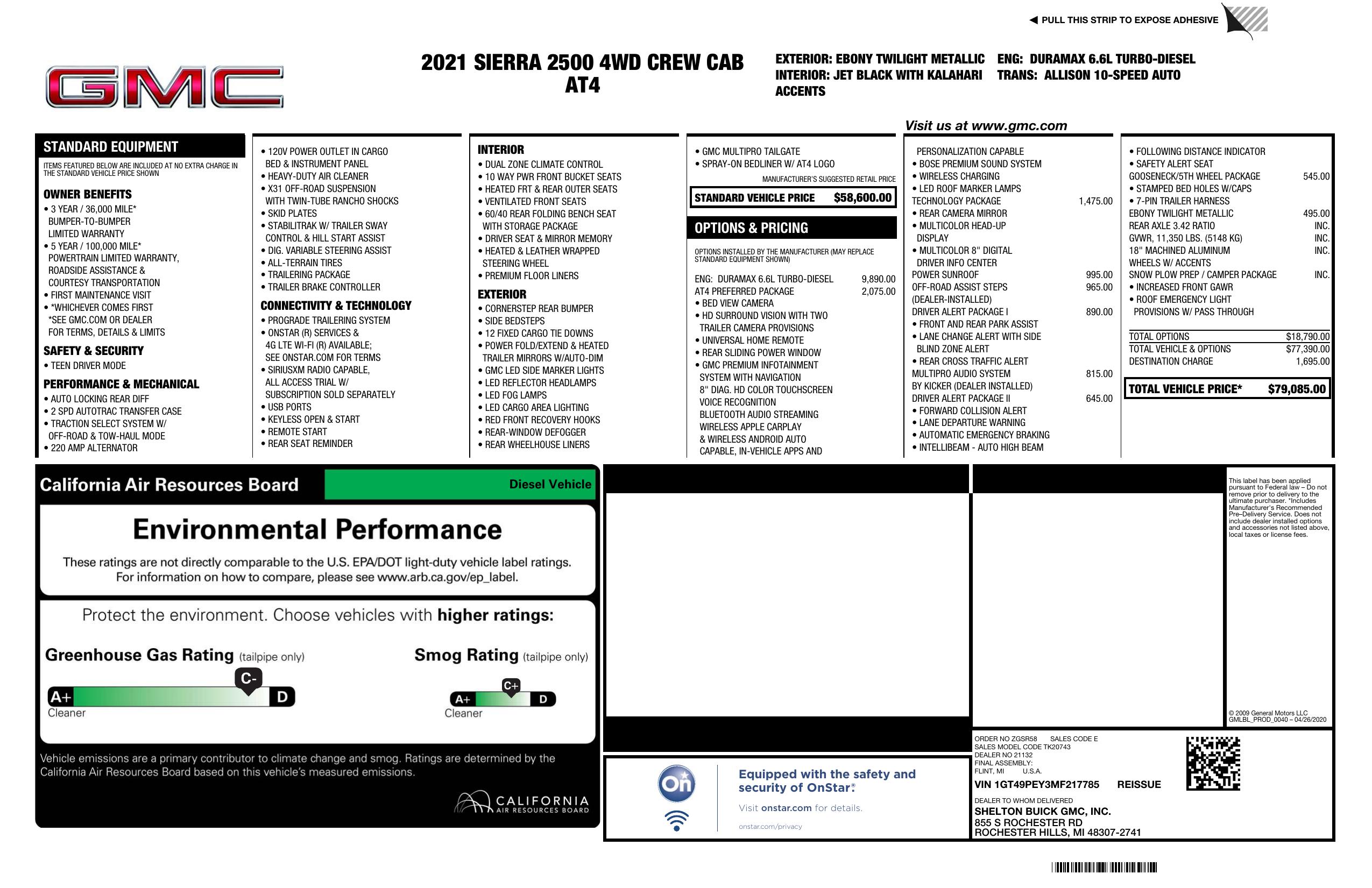 2021 GMC Sierra 2500 Hd 4 Wd Crew Cab 159" At4