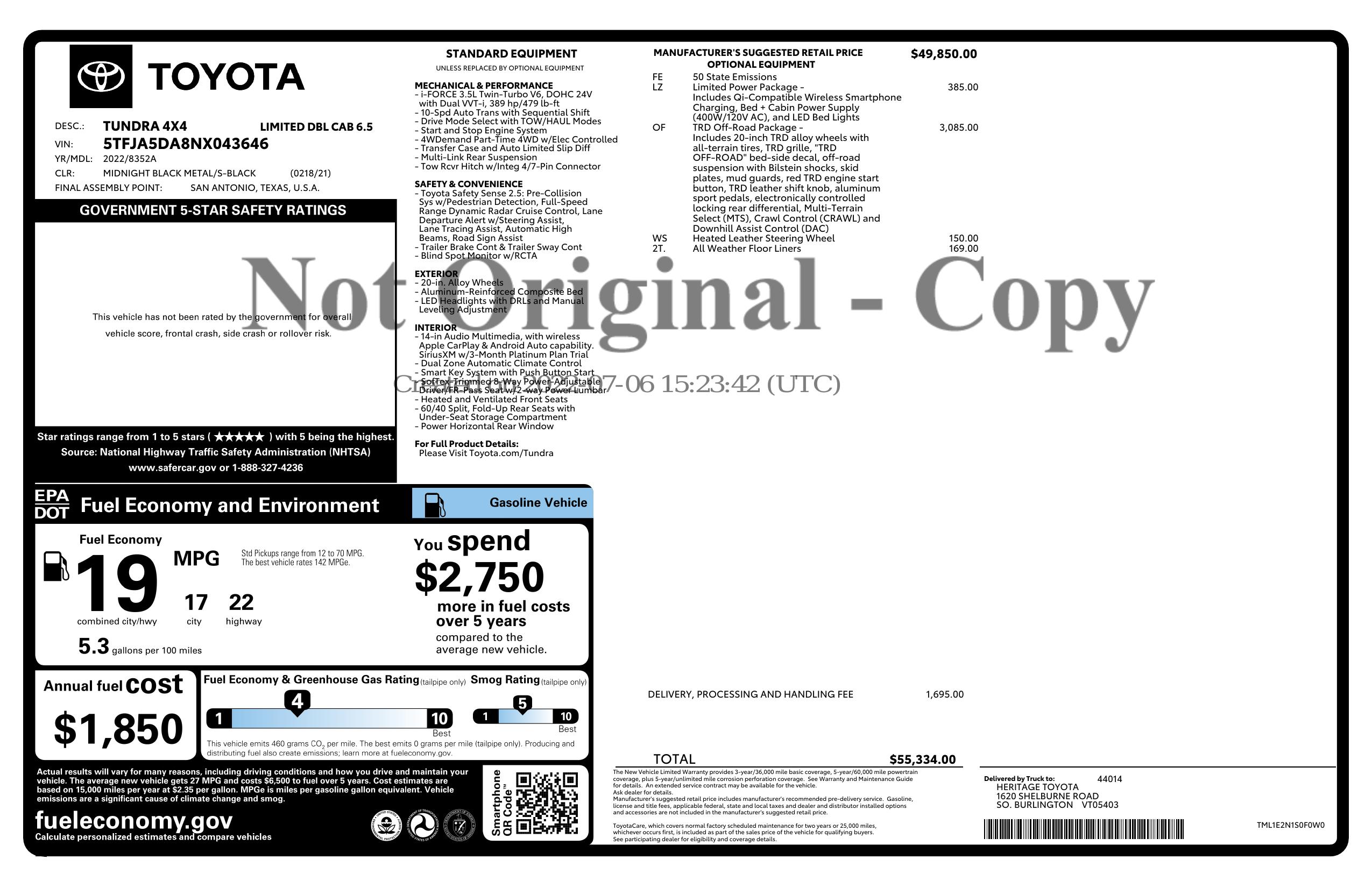 2022 Toyota Tundra 4 Wd Limited Double Cab 6.5' Bed (Natl)