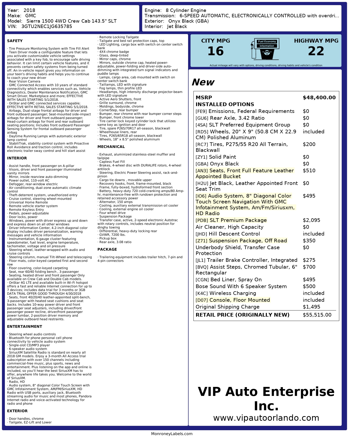 2018 GMC Sierra 1500 4 Wd Crew Cab 143.5" Slt