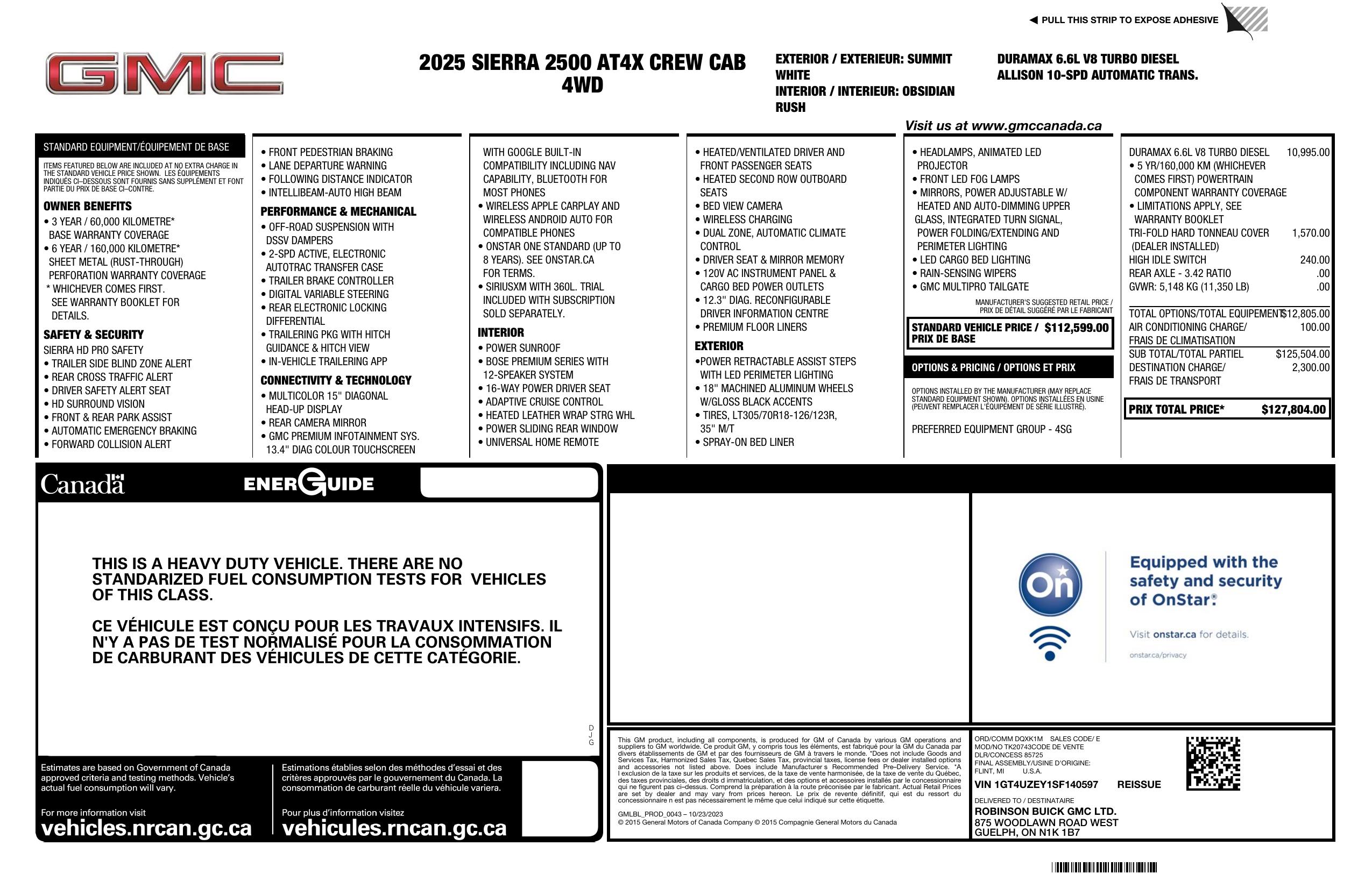 2025 GMC Sierra 2500 Hd 4 Wd Crew Cab 159" At4 X