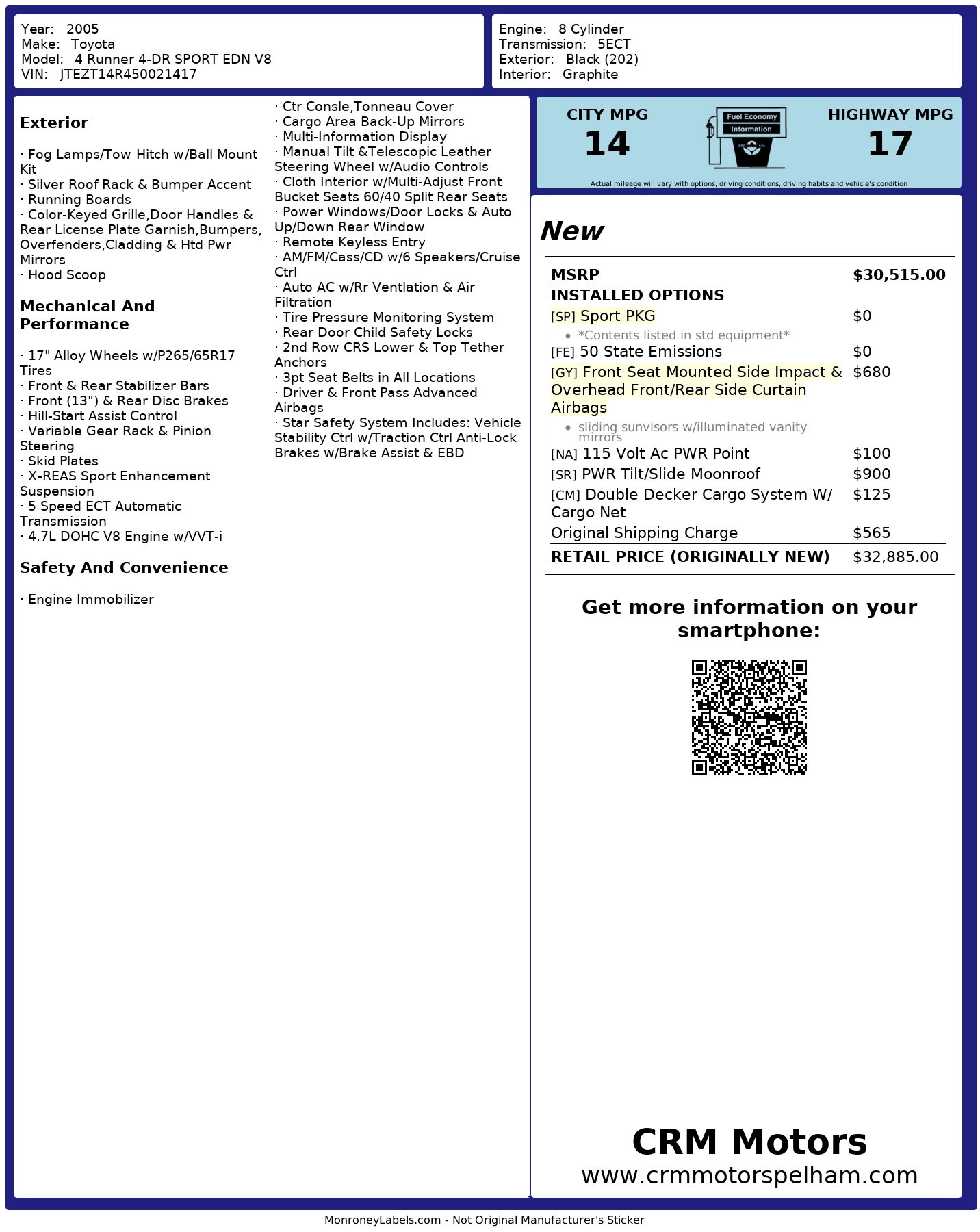 2005 Toyota 4 Runner 4 Dr Sport Edn V8