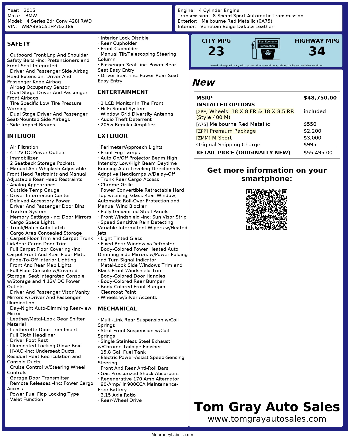 2015 BMW 4 Series 2dr Conv 428i Rwd