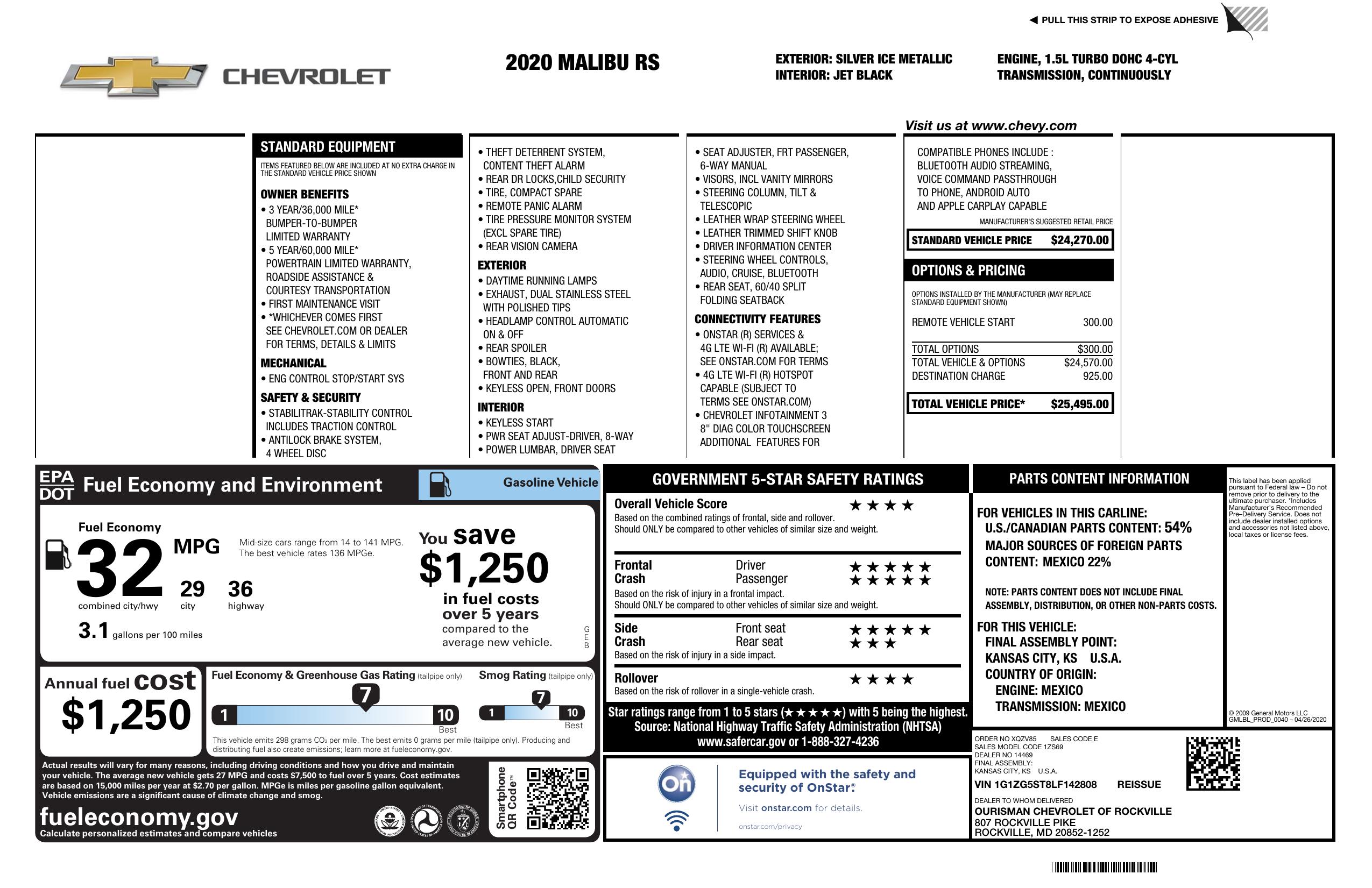 2020 Chevrolet Malibu 4dr Sdn Rs