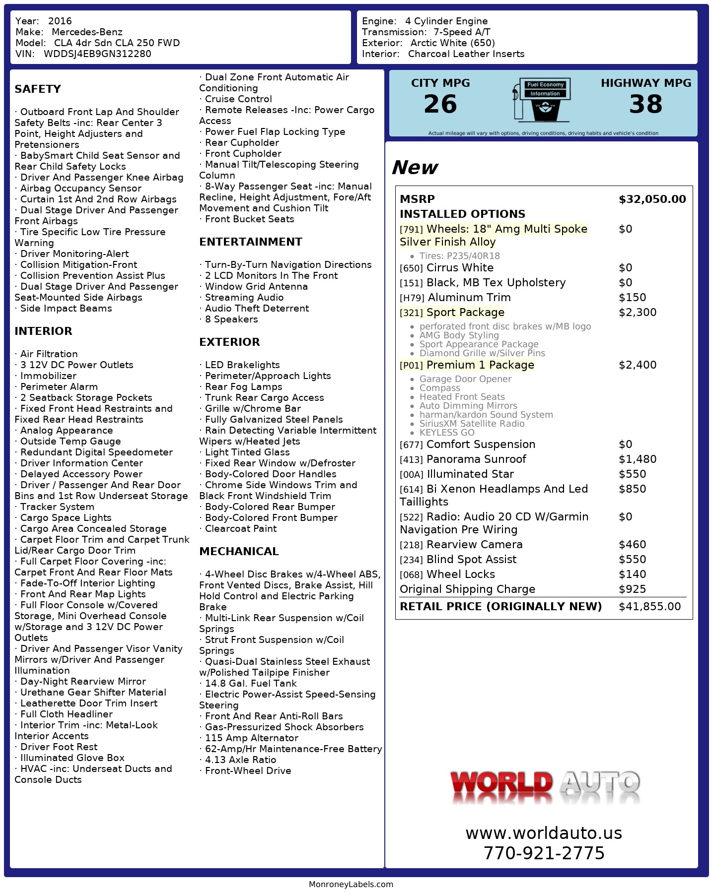 2016 Mercedes Benz Cla 4dr Sdn Cla 250 Fwd