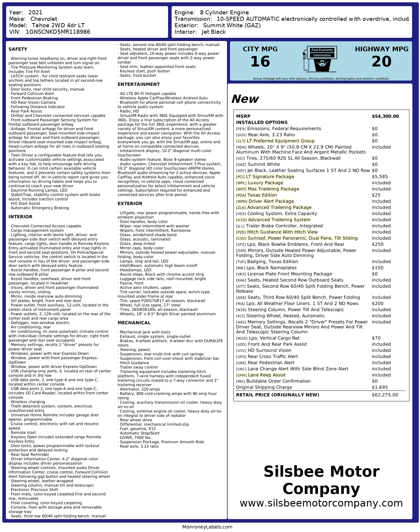 2021 Chevrolet Tahoe 2 Wd 4dr Lt