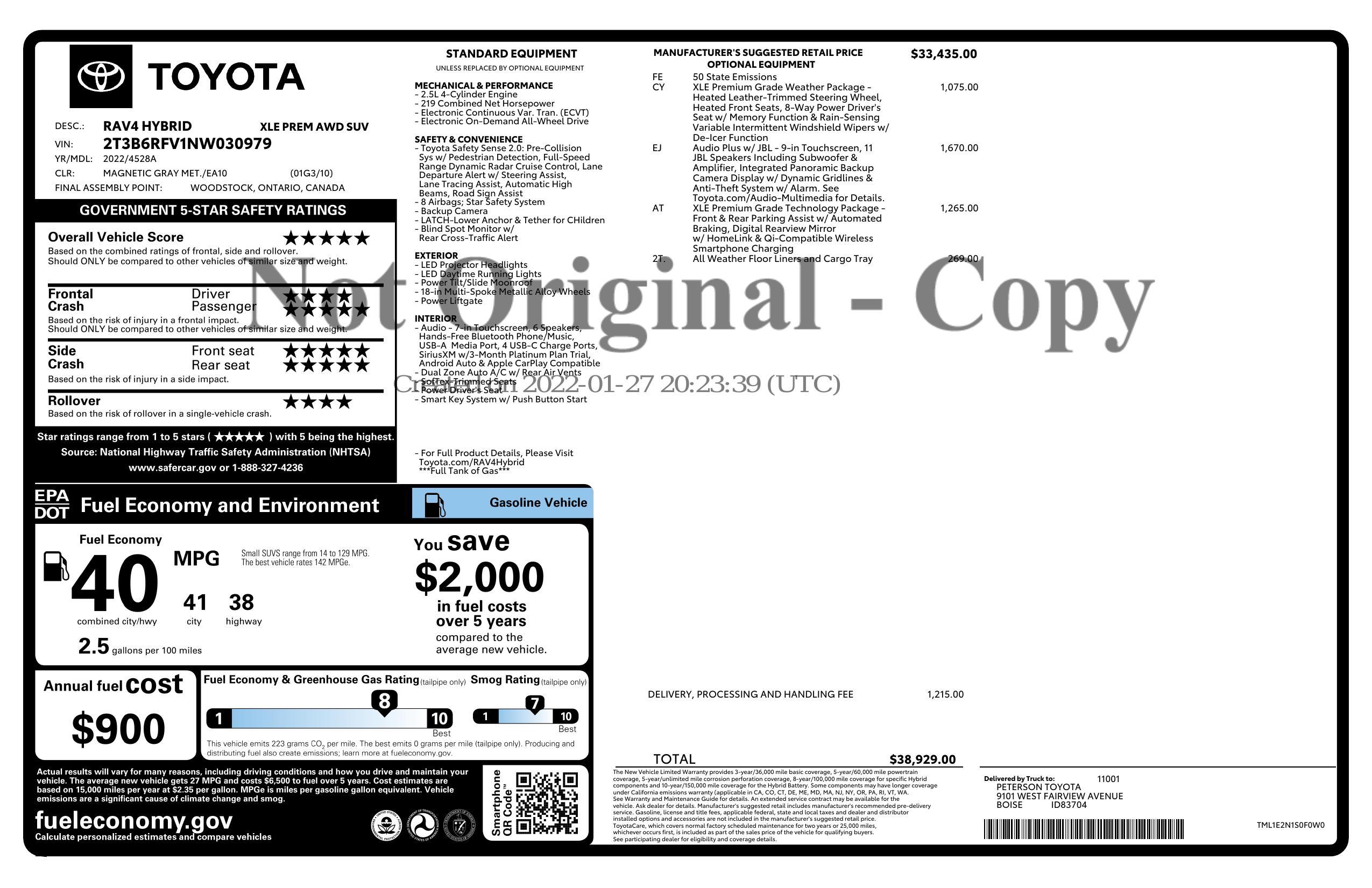 2022 Toyota Rav4 Hybrid Xle Premium Awd (Natl)