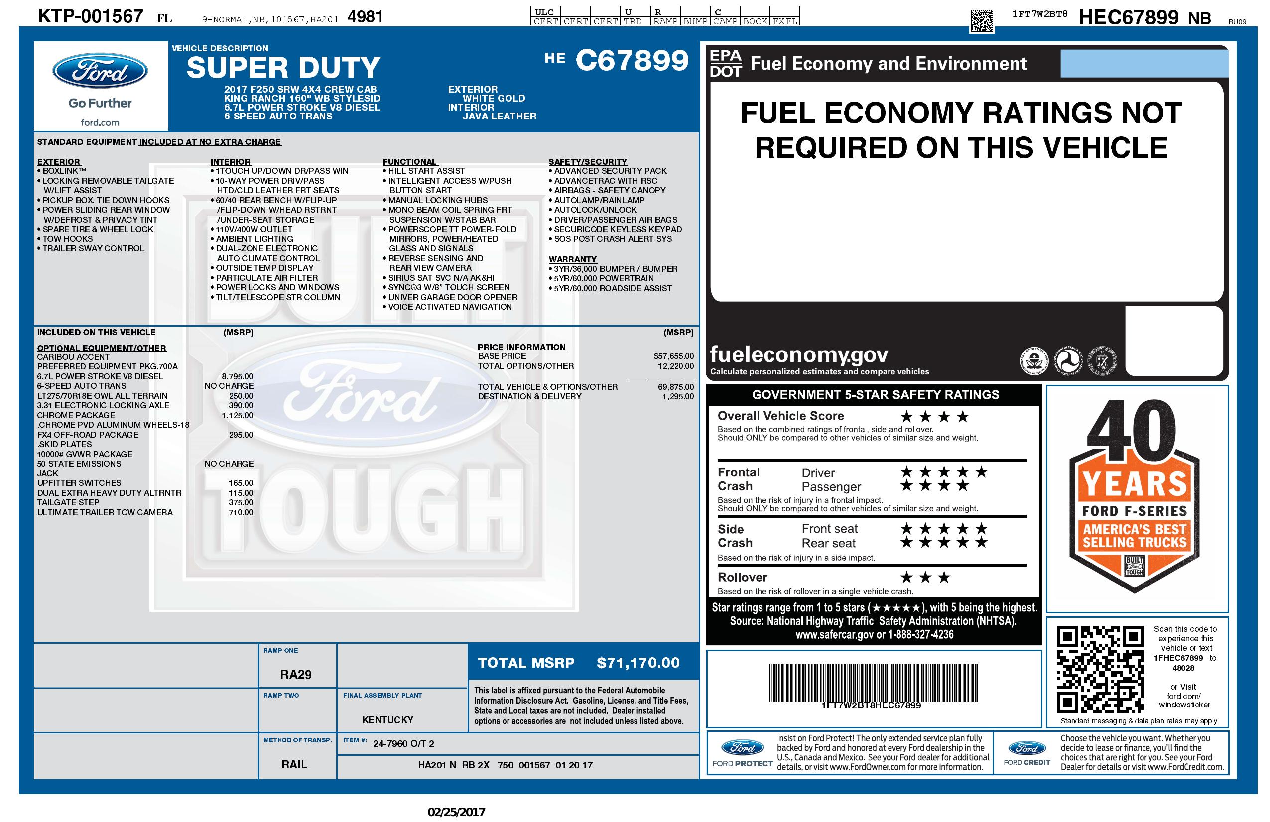 2017 Ford Super Duty F 250 Srw King Ranch 4 Wd Crew Cab 6.75' Box