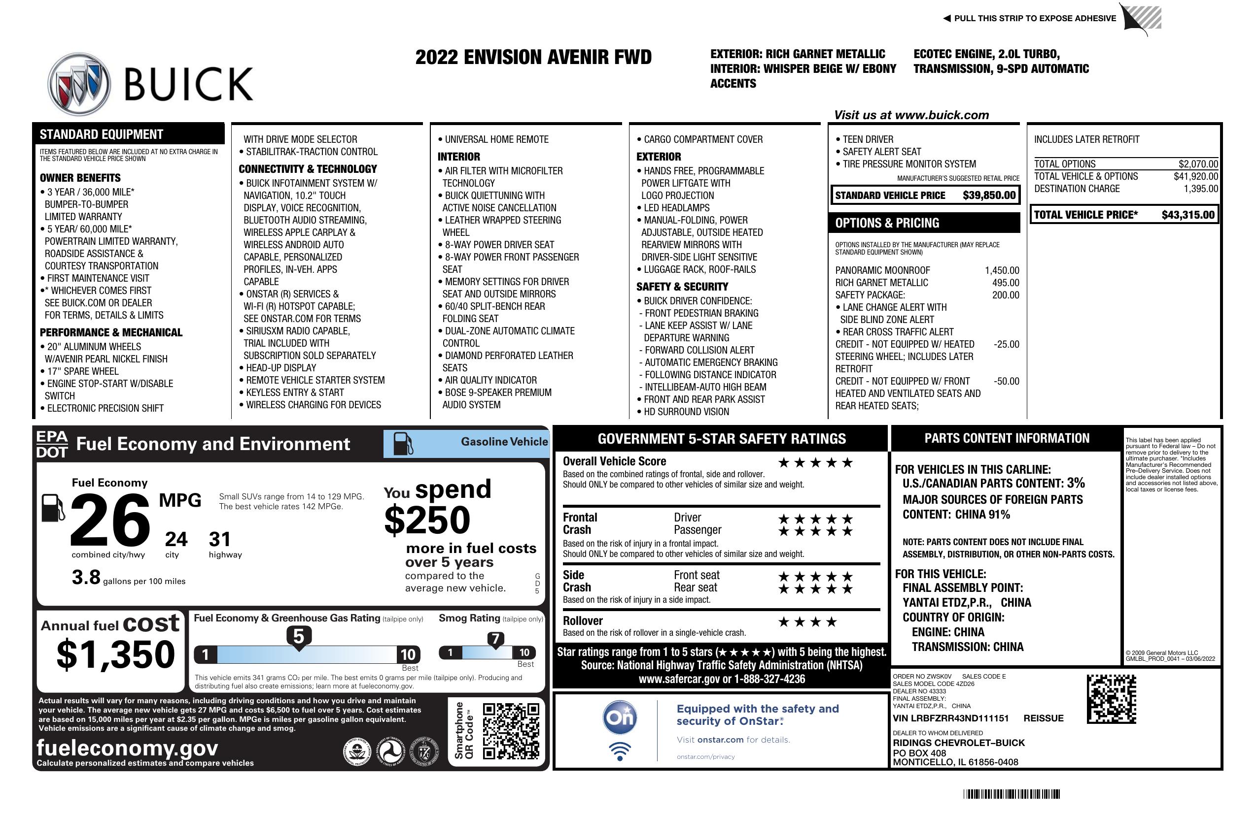 2022 Buick Envision Fwd 4dr Avenir