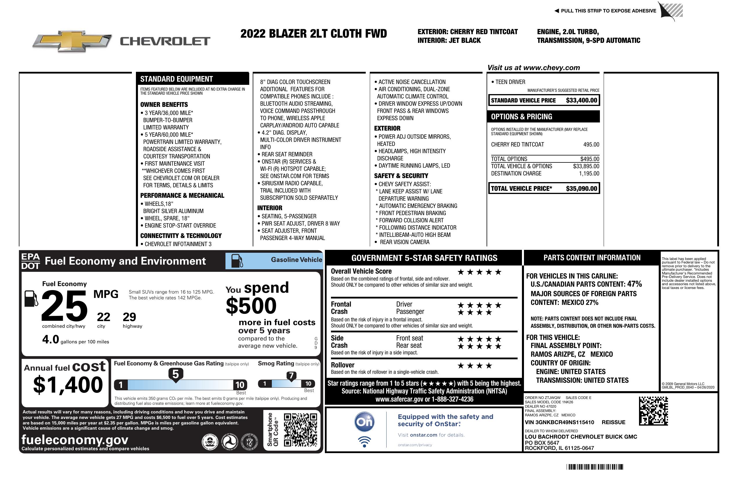 2022 Chevrolet Blazer Fwd 4dr Lt W/2 Lt