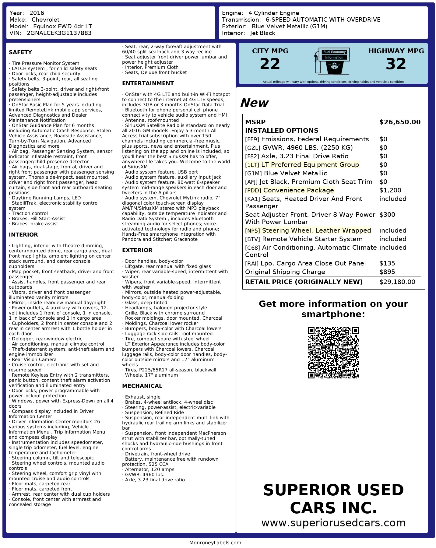 2016 Chevrolet Equinox Fwd 4dr Lt